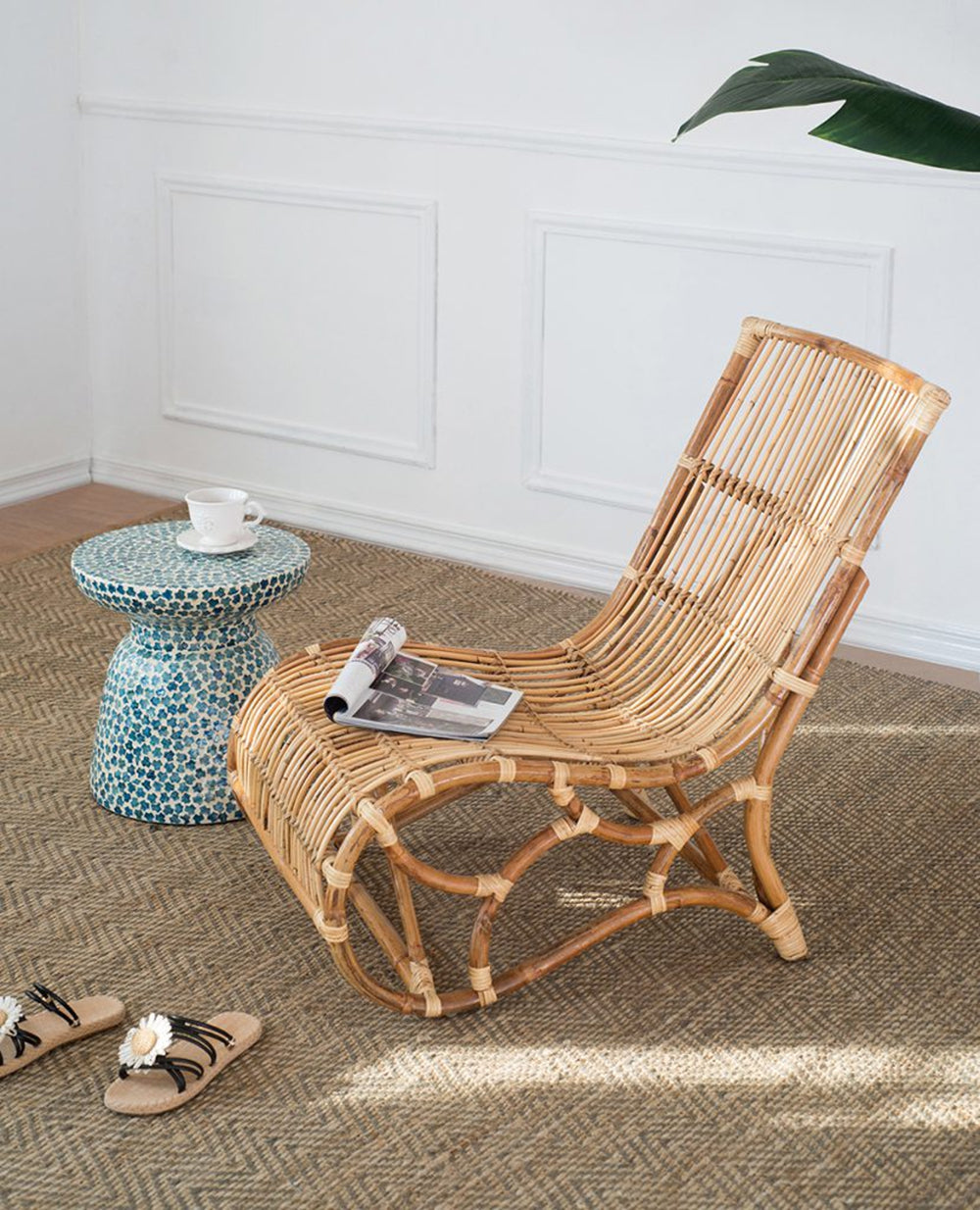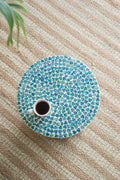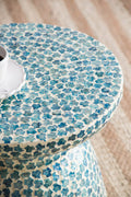 D15X16" Capiz Garden Stool Small Side Tabel, Blue Accent Round End Table Blue Primary Living Space Bamboo