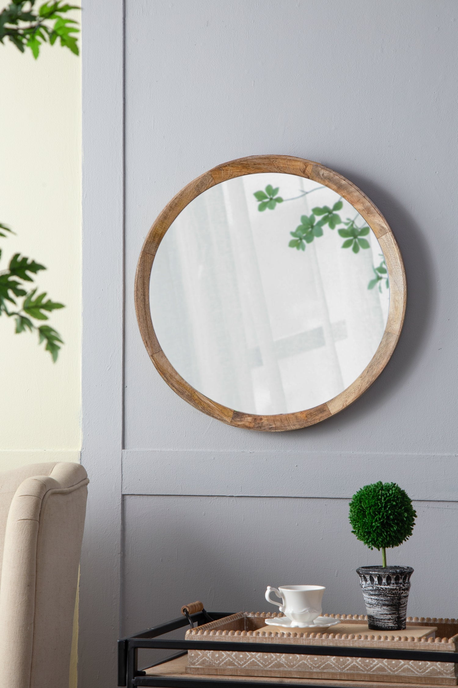 D20X1.5"Transitional Decor Style Mango Wood Wall Mirror Wall Decor With Frame Of Solid Mango Wood For Bathroom,Entryway Console Lean Against Wall Natural Wood Glass
