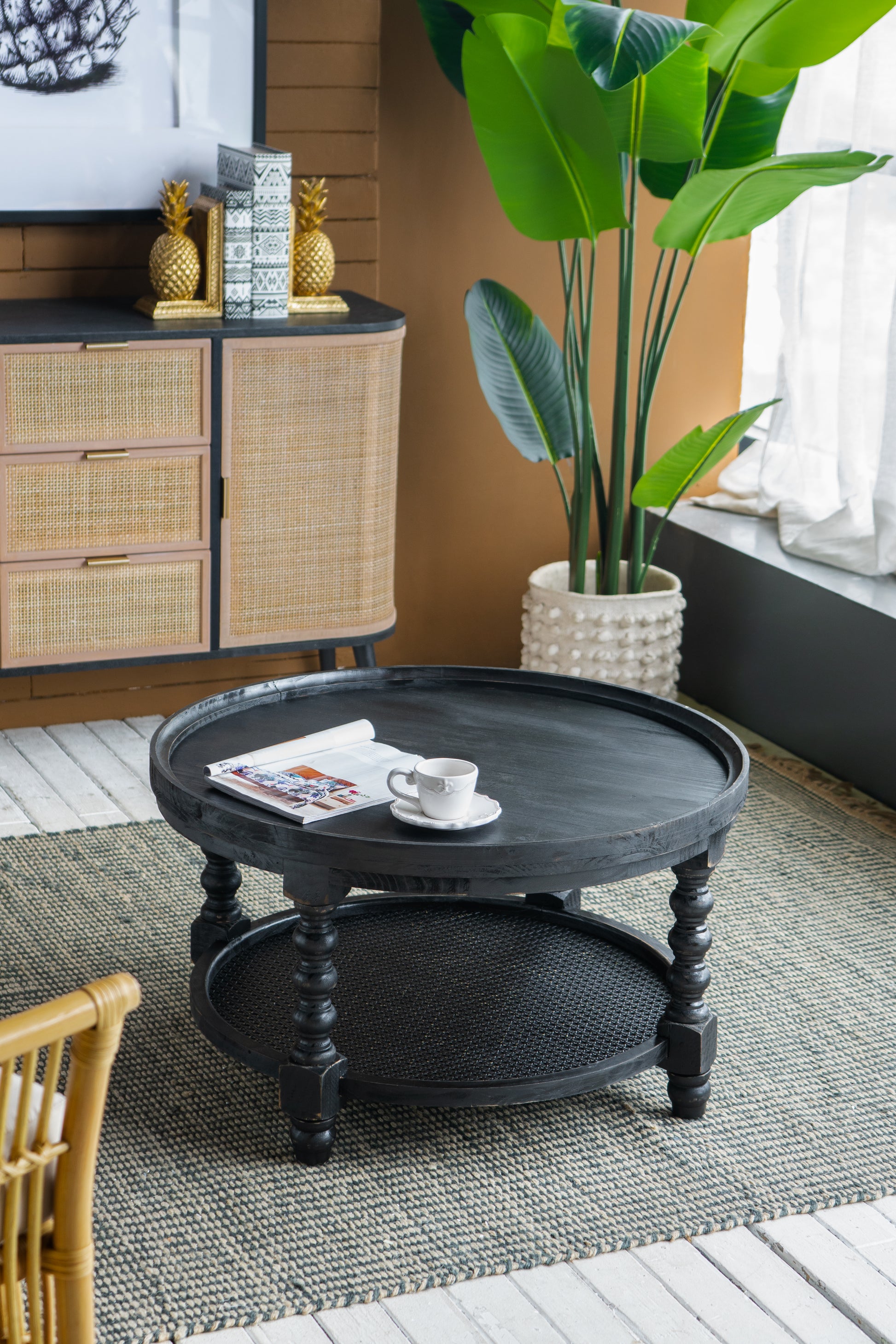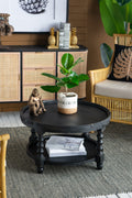 D29.7" X 16.5"Round 2 Tiered Side Tabel, Natural End Tabel For Lving Room Bedroom Entryway, Black Black Wood