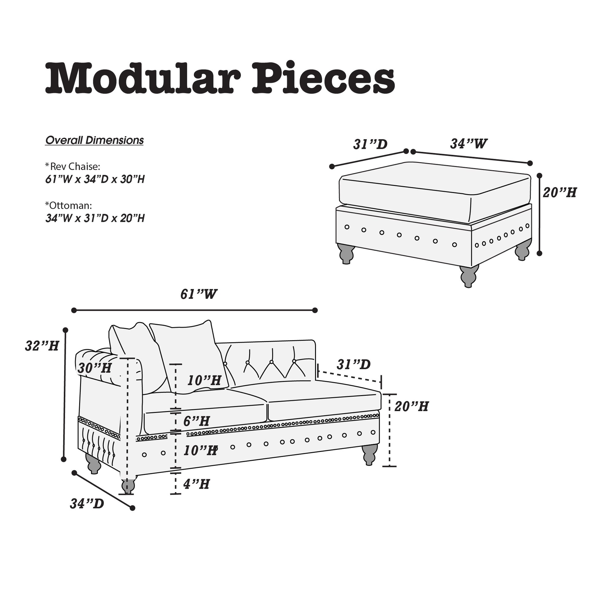 Listing Includes :- 4pc Modular Sectional Sofa Set (3x Reversible One-Arm Loveseat And 1x Ottoman) Only.