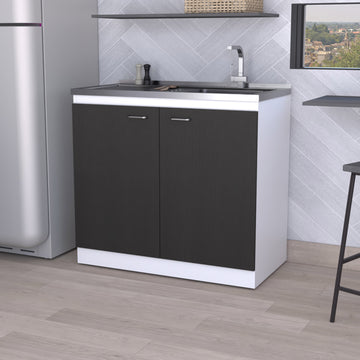 Dark Walnut Rectangle 2 Door Utility Sink And Cabinet Black Particle Board