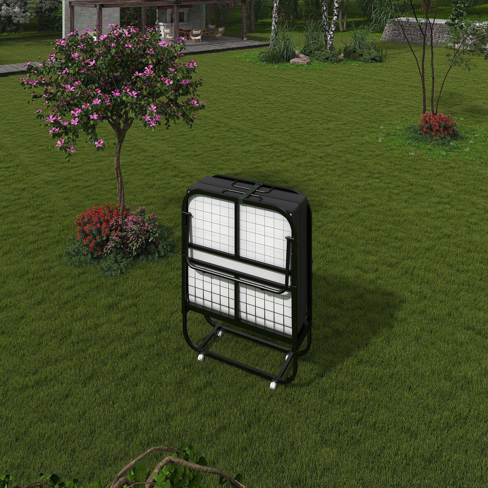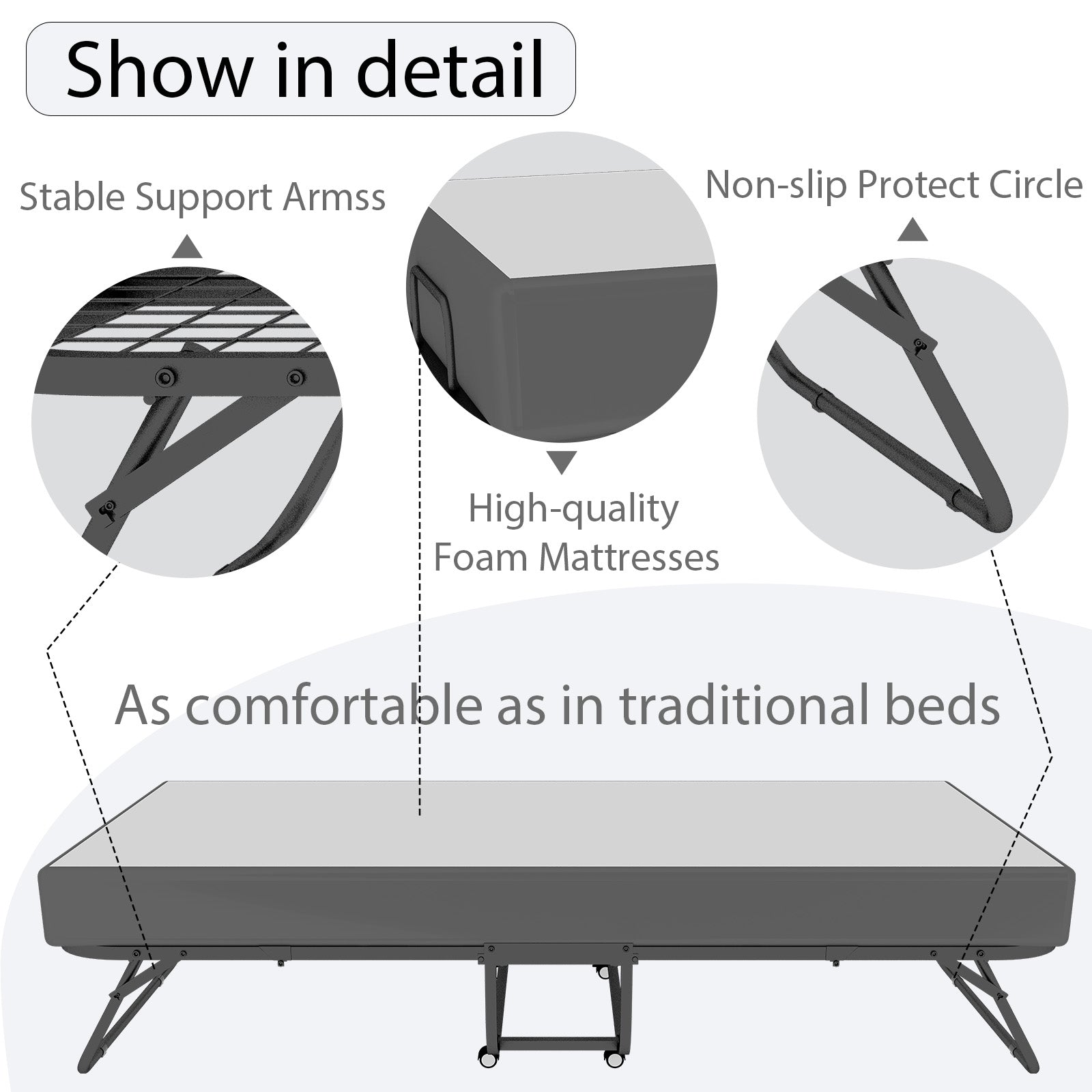 Deluxe Diplomat Folding Bed Twin Size With Luxurious Memory Foam Mattress And A Super Strong Sturdy Frame White Black Metal