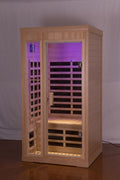 Deluxe Version Plus One Person Far Infrared Hemlock Sauna Room With Led Colour Lights Natural Solid Wood