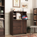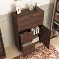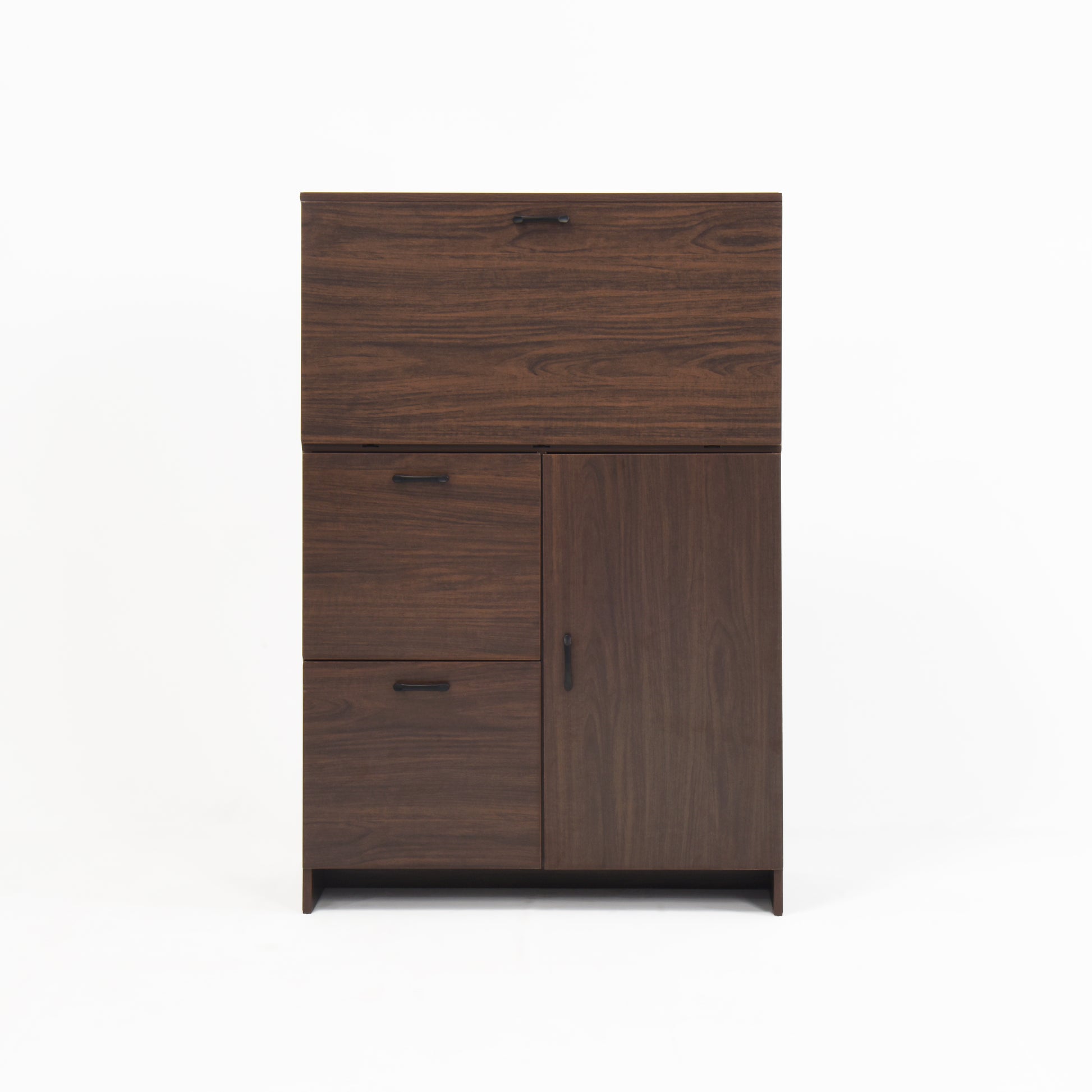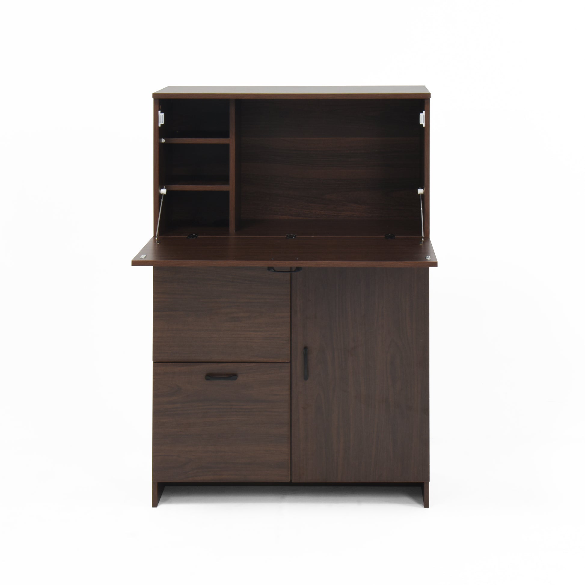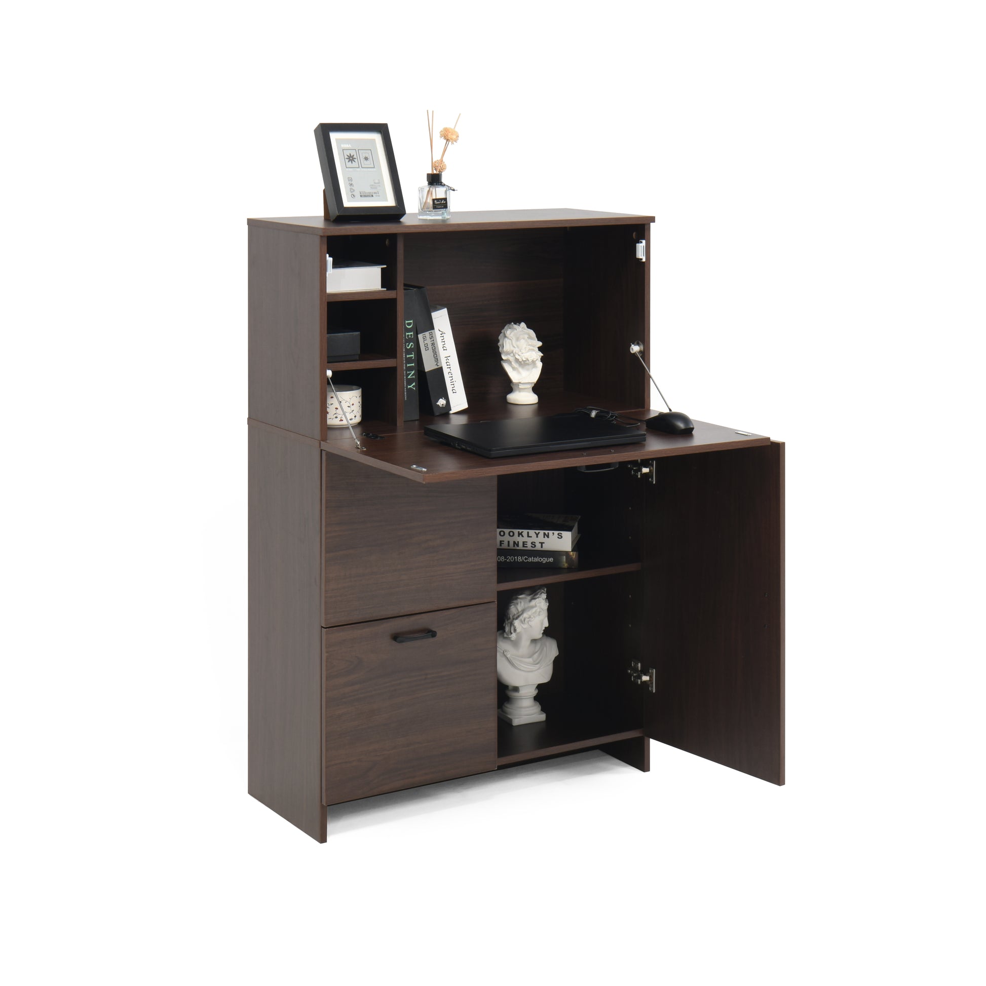 Desk Cabinet, With Storage Drawer & Shelves, Fold Up Desktop, Ideal For Home, Office, Dormitory, Small Spaces W31.49"Xd13.78"Xh47.2" Walnut Particle Board