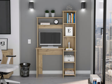 Desk Logan, Five Cubbies, Light Oak Finish Light Oak Particle Board