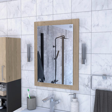 Devoux Rectangular Bathroom Mirror Light Pine Brown Engineered Wood