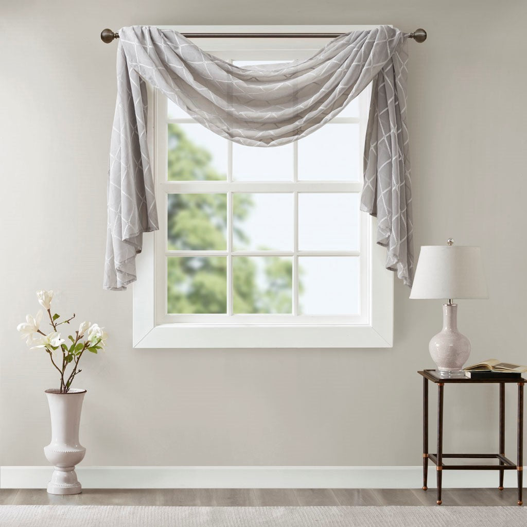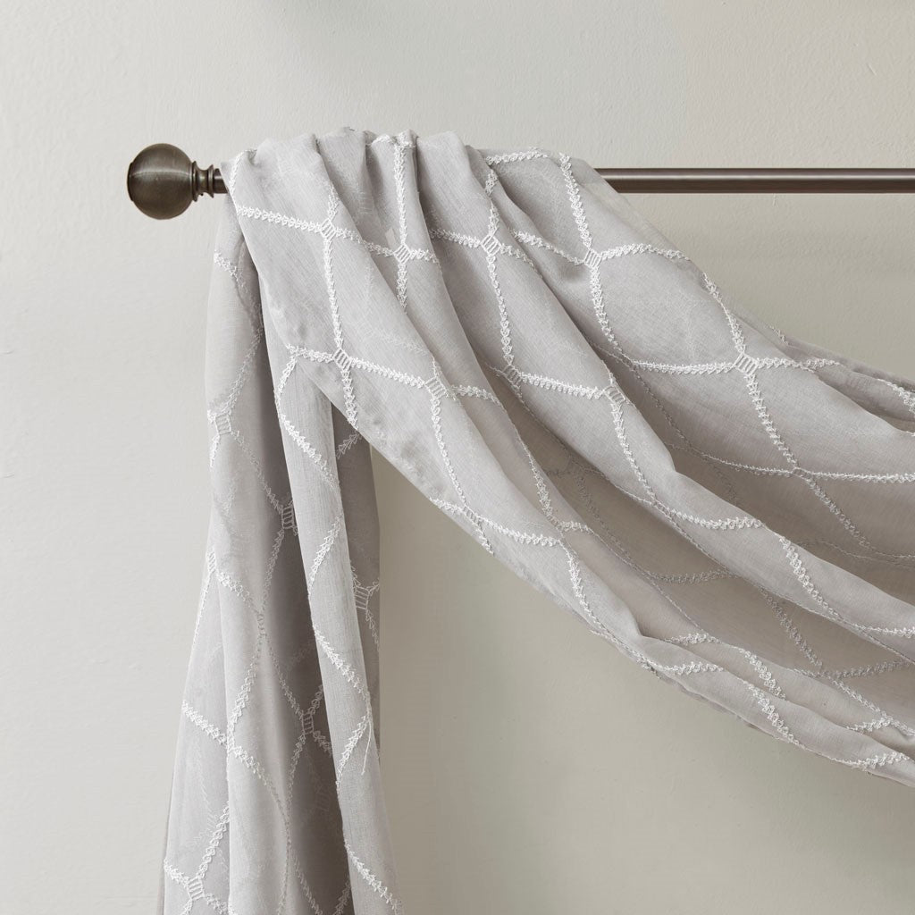 Diamond Sheer Embroidered Window Scarf Grey Polyester
