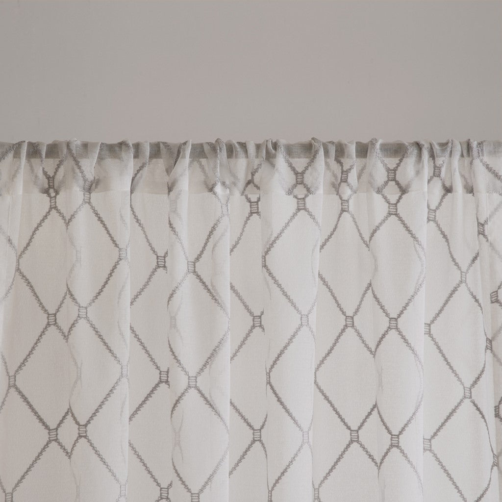 Diamond Sheer Window Curtain Panel Only 1 Pc Panel White Gray Polyester