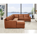 Dillon Leather Left Chaise Sectional Brown Genuine Leather Wood Primary Living Space Medium Firm Cushion Back Mid Century Modern U Shaped Eucalyptus Square Arms Down Filling Leather 6 Seat