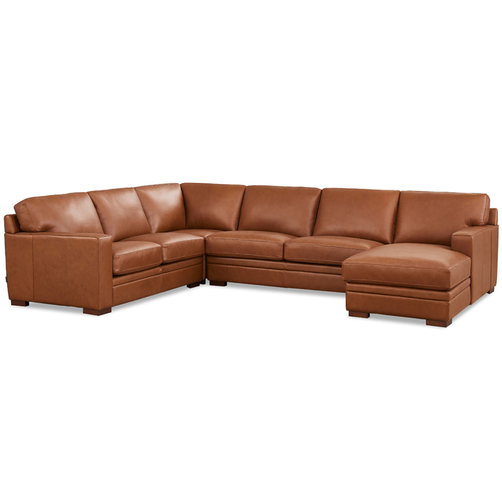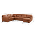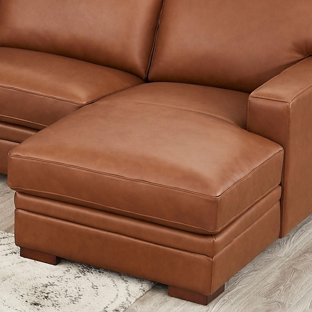 Dillon Leather Right Chaise Sectional Brown Genuine Leather Wood Primary Living Space Medium Firm Cushion Back Mid Century Modern U Shaped Eucalyptus Square Arms Down Filling Leather 6 Seat
