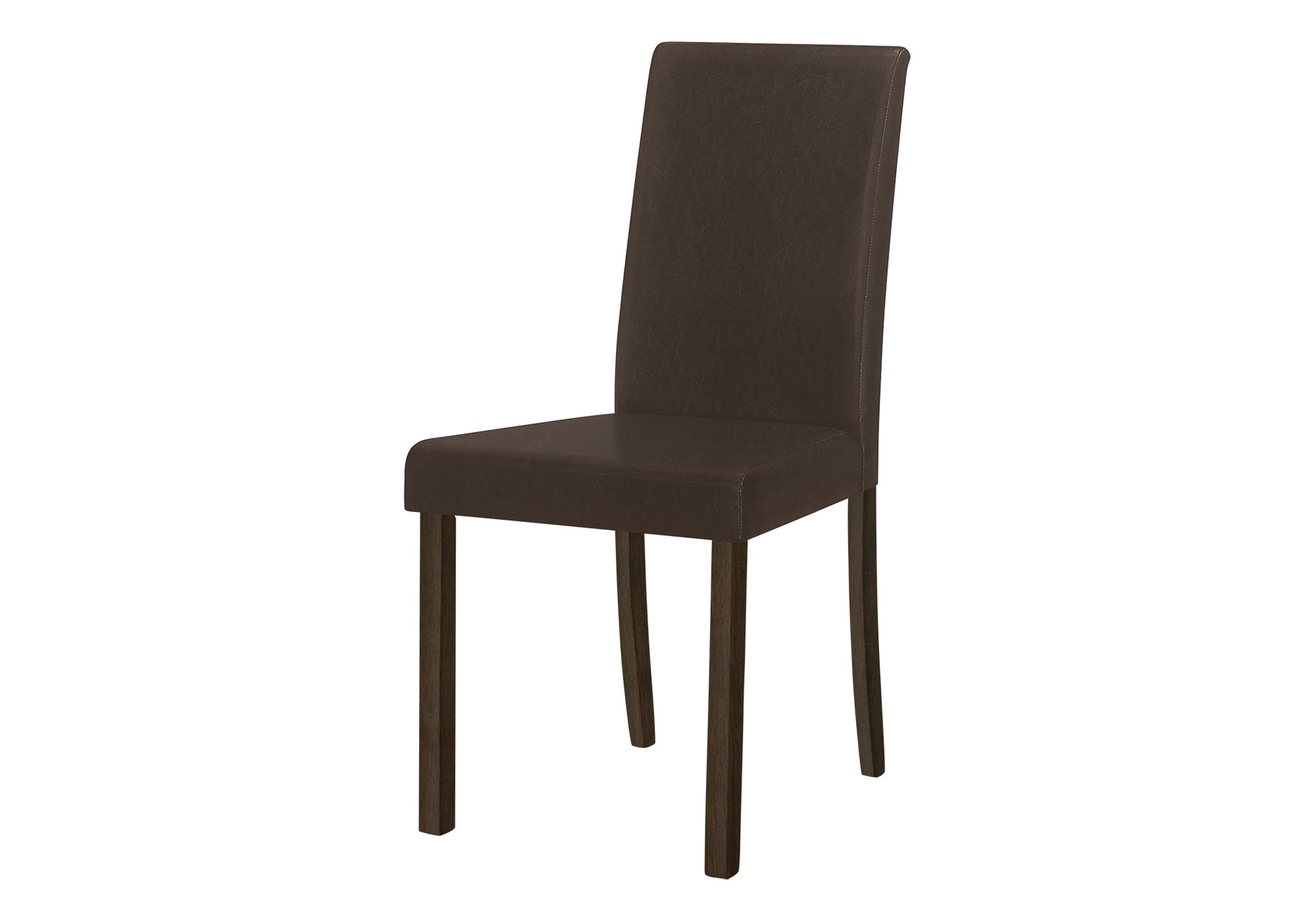 Dining Chair, Set Of 2, Side, Upholstered, Kitchen, Dining Room, Brown Leather Look, Brown Wood Legs, Transitional Brown Foam Wood