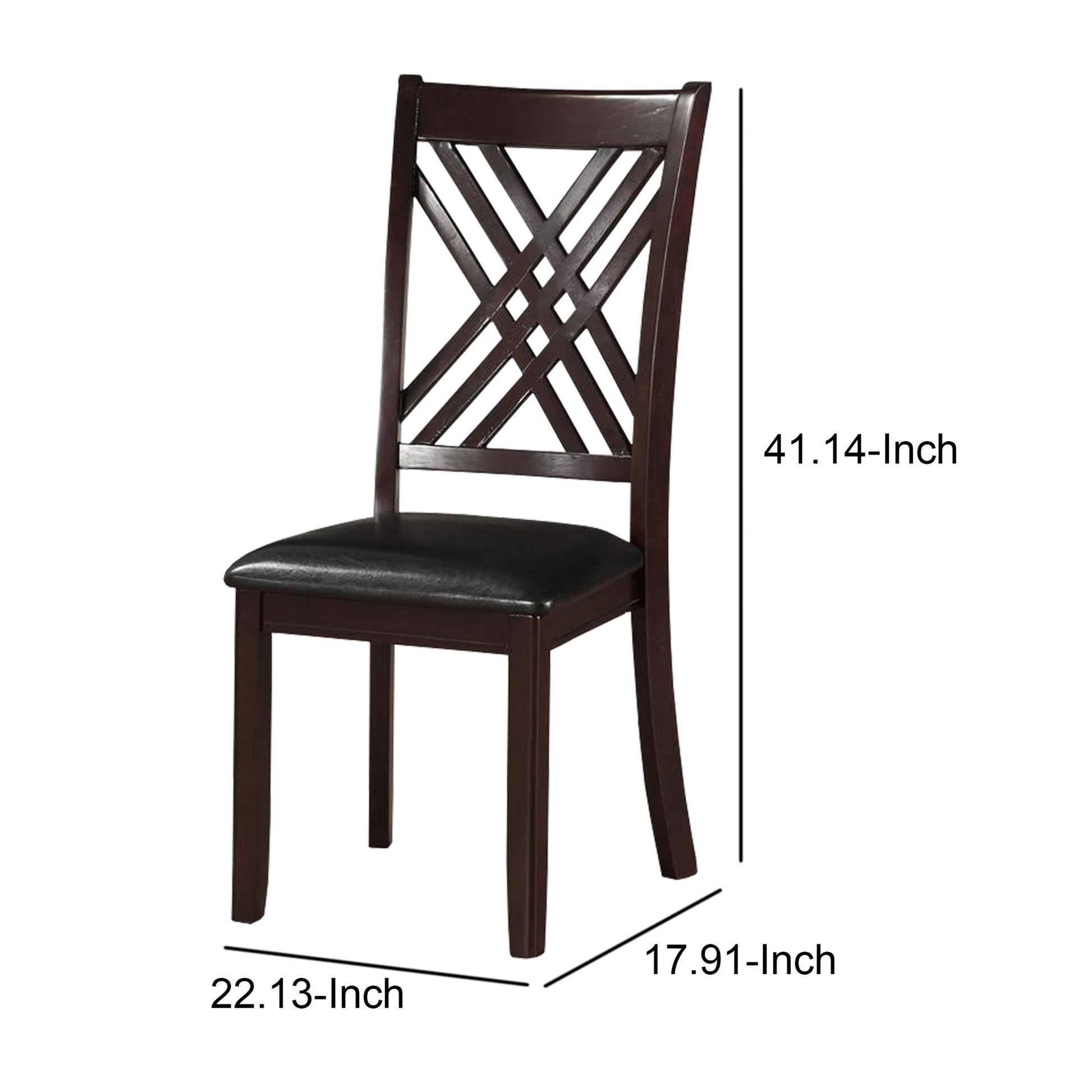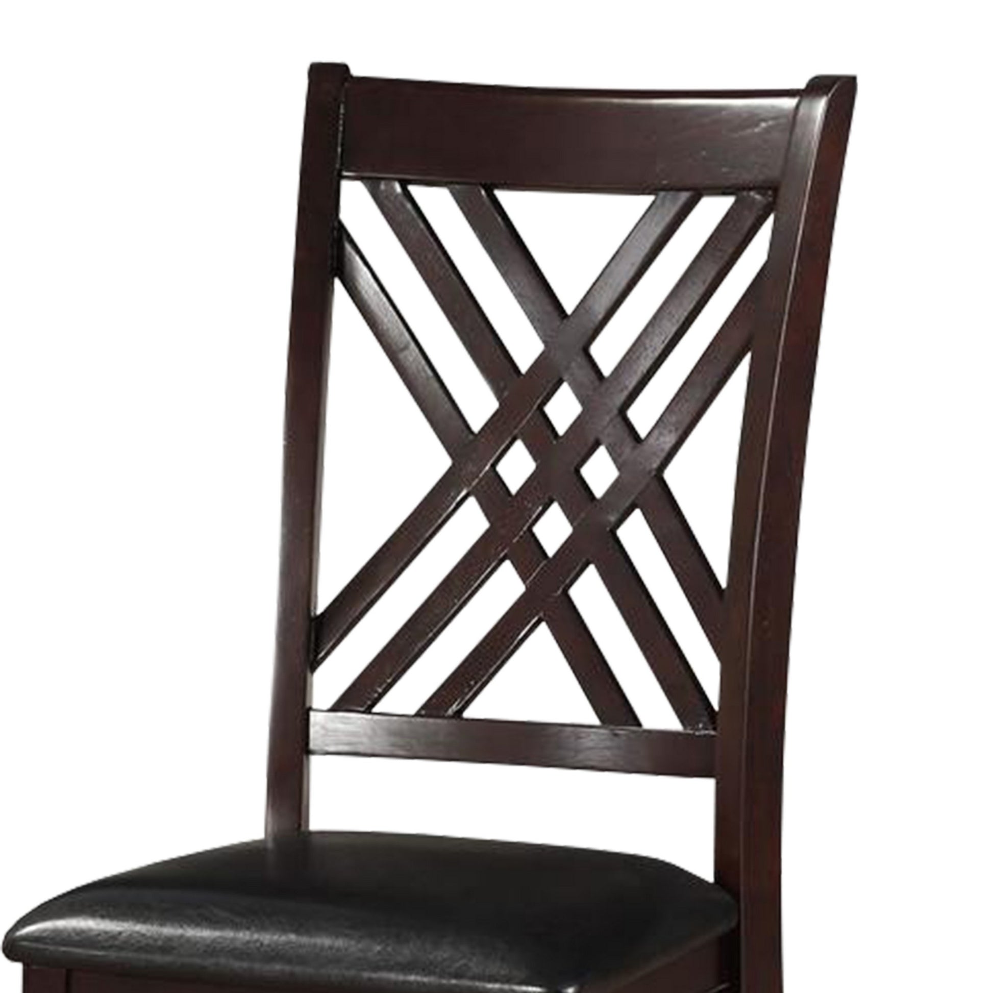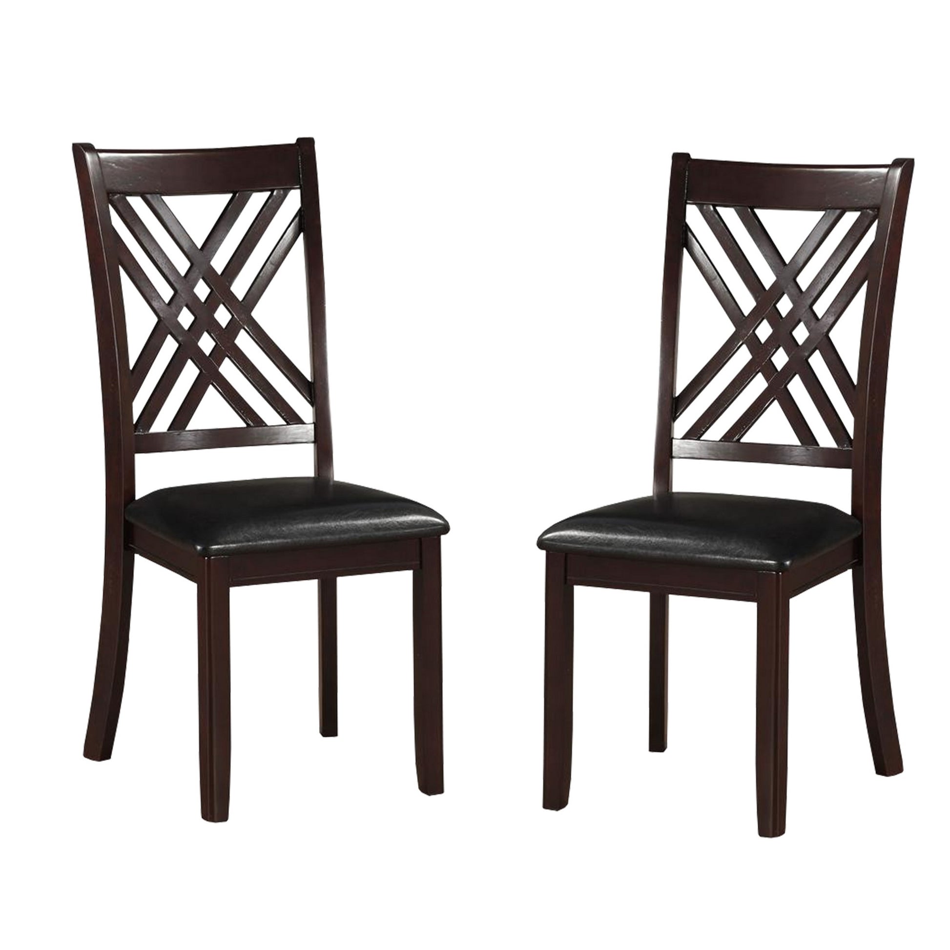 Dining Chair, Vegan Faux Leather, Cross Lattice, Set Of 2, Black Black Solid Wood