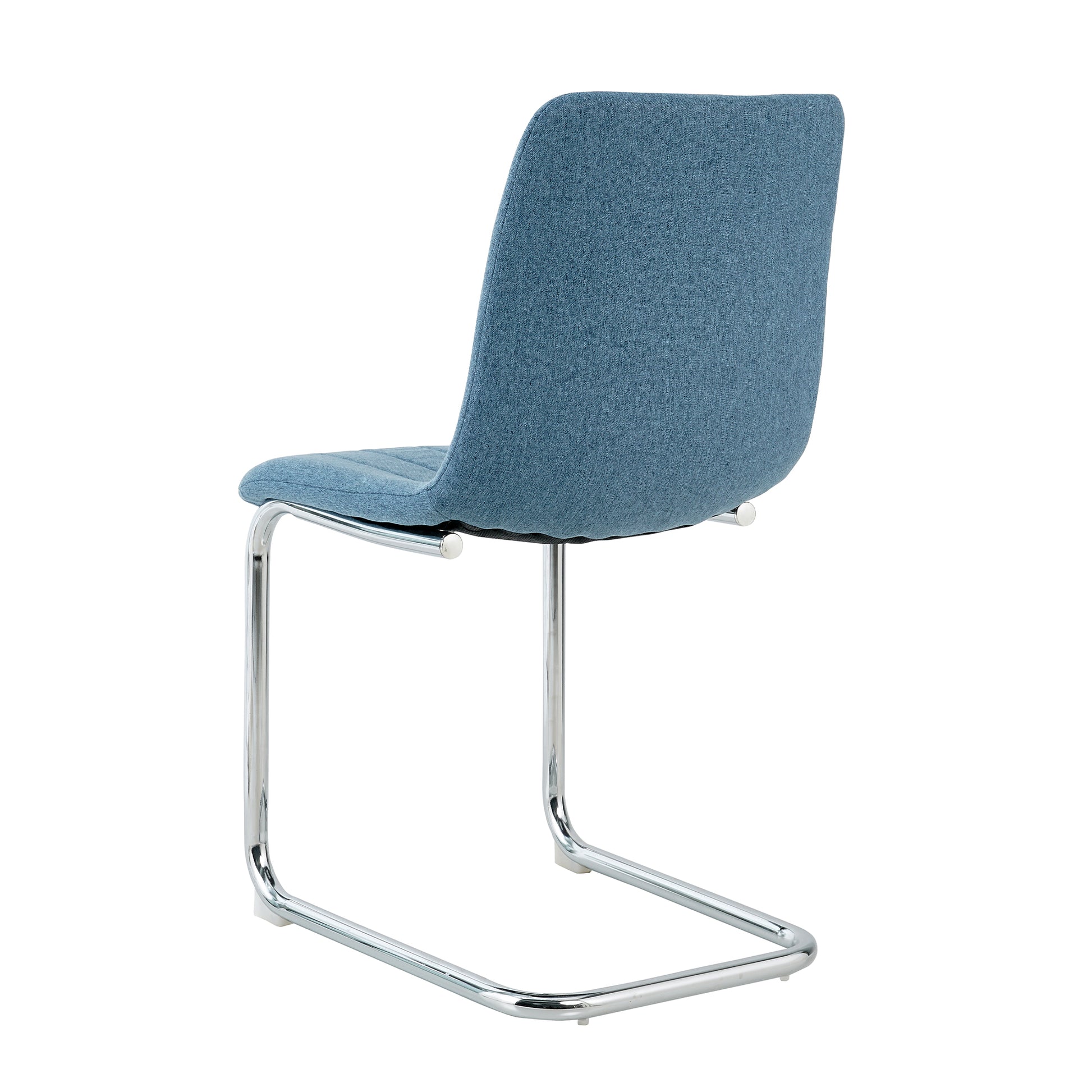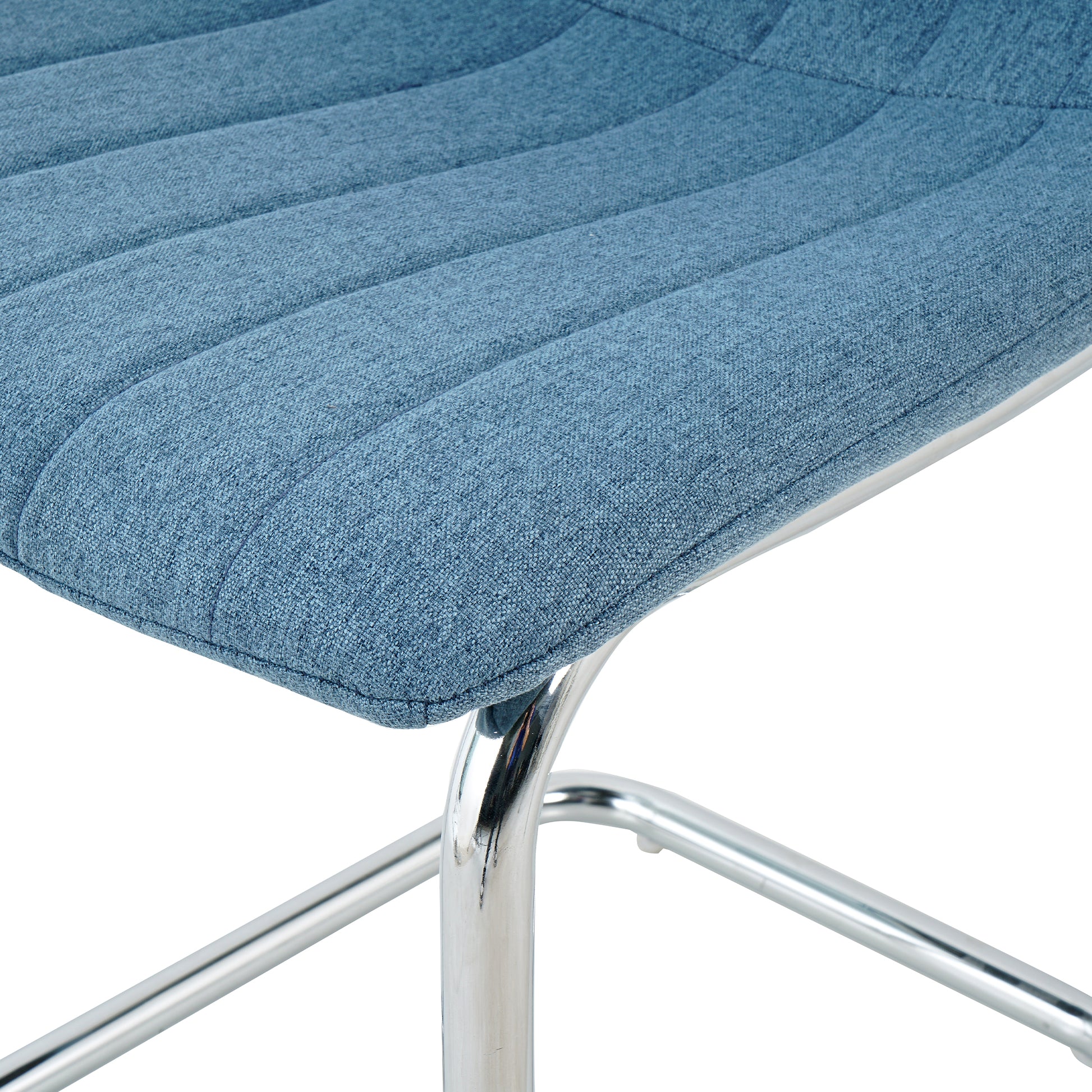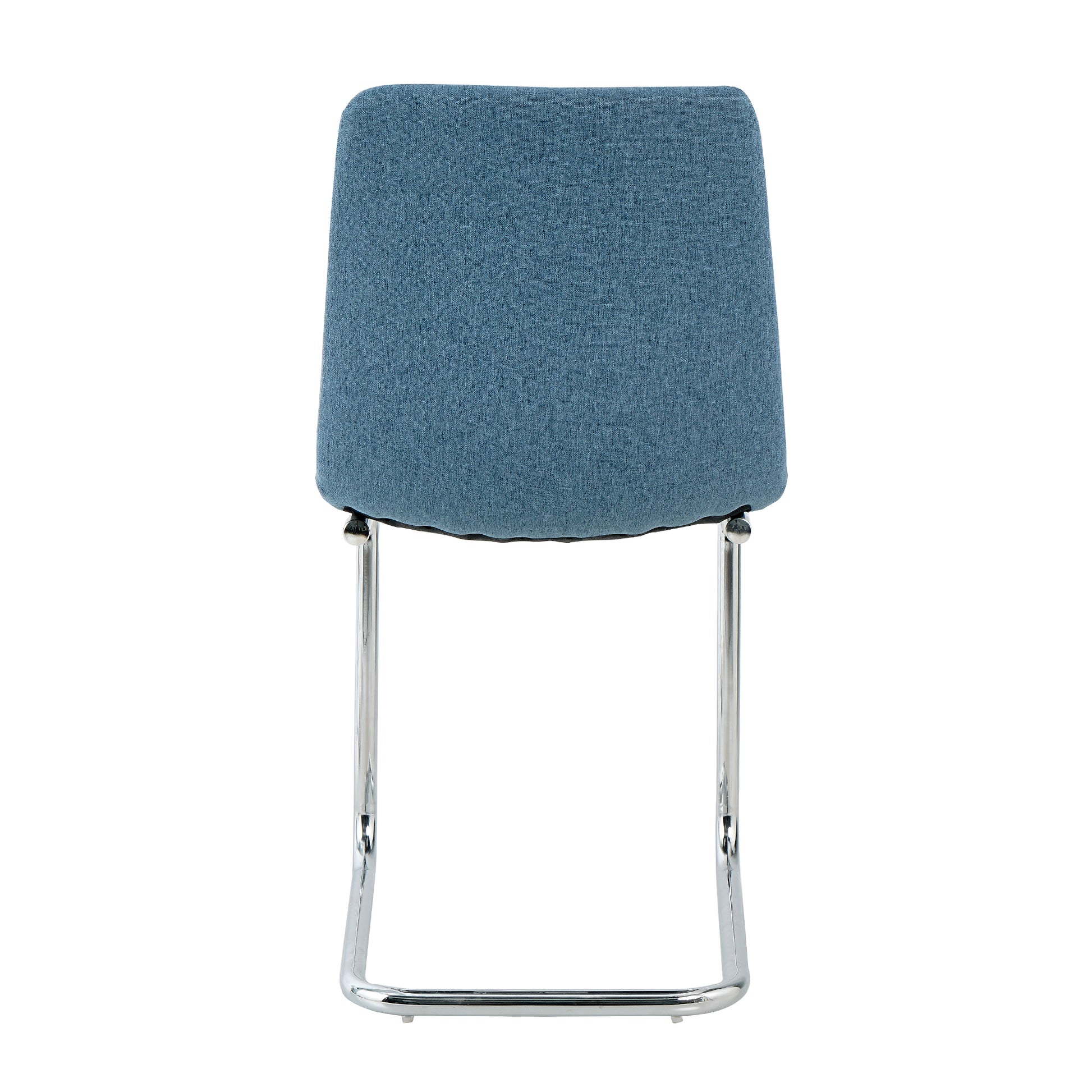 Dining Furniture 63" Table With Four Chairs,0.3" Clear Tempered Glass With Chrome Metal Legs,Fabric Chair With Chrome Metal Legs. Upholstered Chair Glass Dark Blue Metal Rectangular Dining Table
