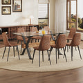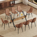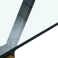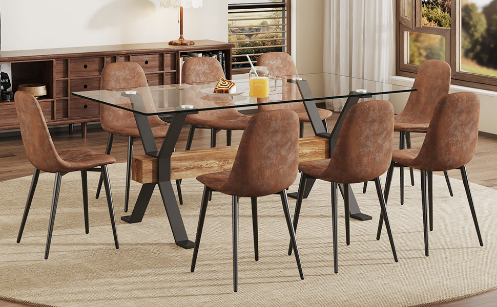 Dining Table. Modern Tempered Glass Dining Table. Large Modern Office Desk With Black Metal Legs And Mdf Crossbars, Suitable For Home And Office Use. 8 High End Cushioned Seats.F1105 B0501A Transparent Mdf Glass