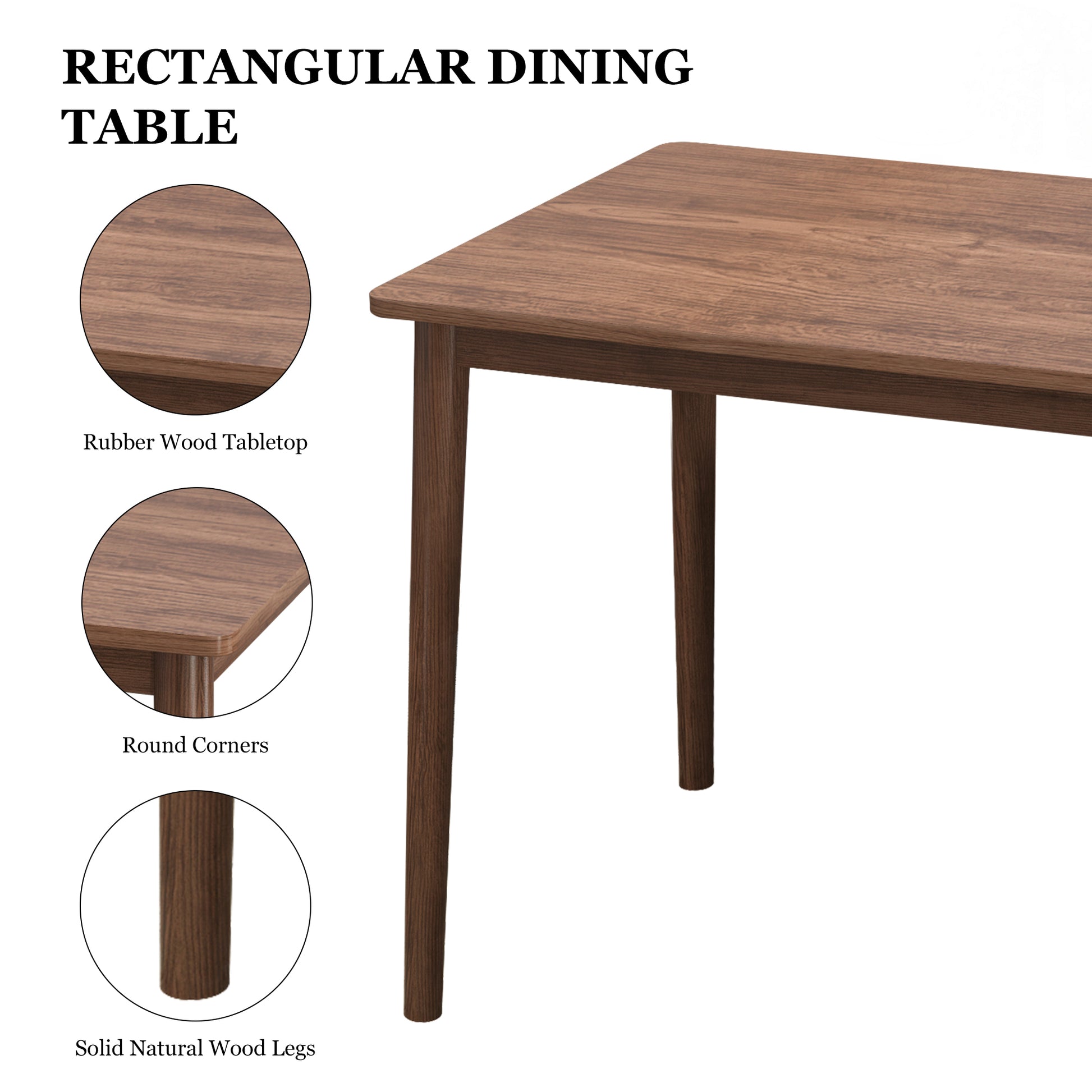 Dining Table Retro Rectangle Table Solid Rubber Wood Rustic Furniture For Kitchen Dining Room Walnut Color Walnut Rubber Wood