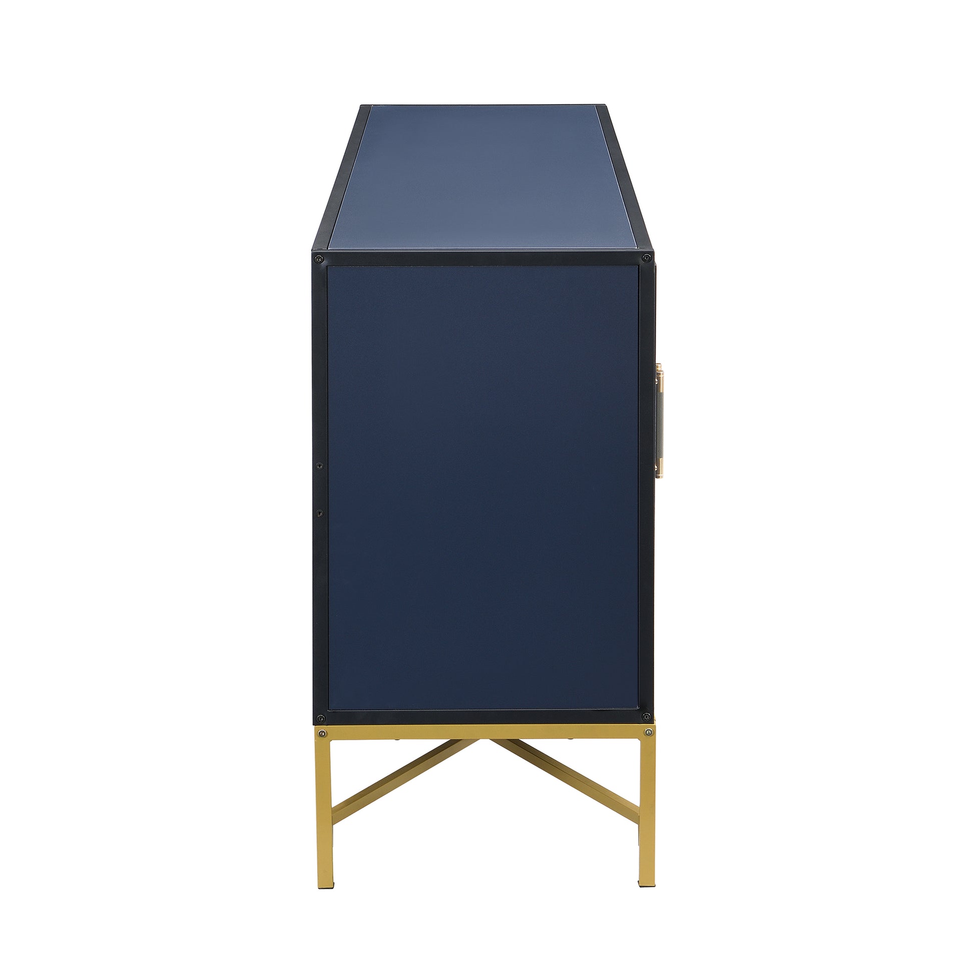 Distinctive Features Of Four Door Sideboard With Metal And Cross Leg Design,Suitable For Living Rooms,Entrance And Study Navy Blue American Design Mdf
