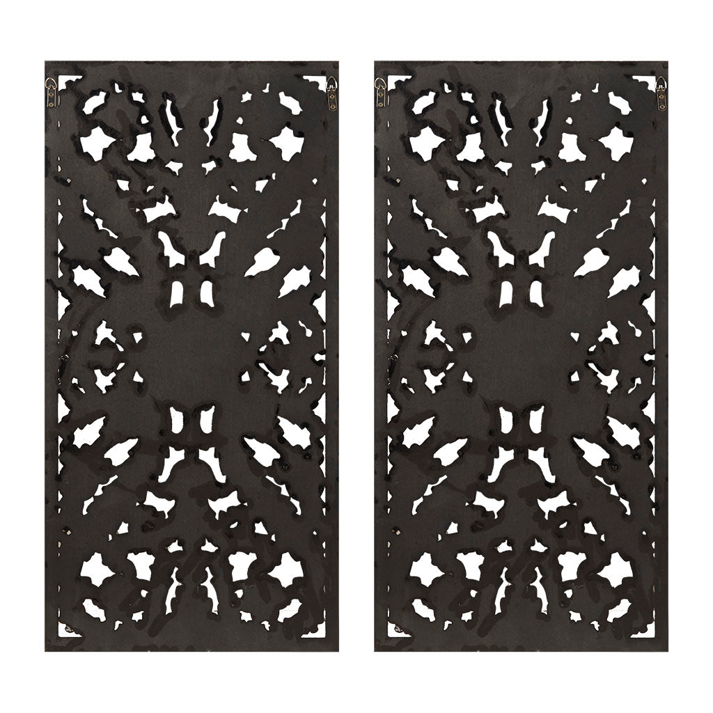 Distressed Carved Wood 2 Piece Wall Decor Set Bronze Mdf