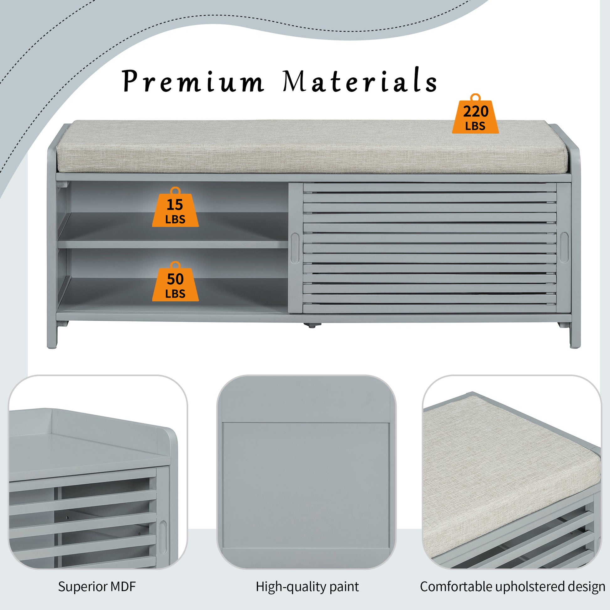 Distressed Shutter Storage Bench With Acacia Veneer For Retro Charm For Living Room, Entryway Grey Grey Mdf