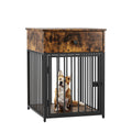 Dog Crate Furniture, Dog House, Decorative Dog Kennel With Drawer, Indoor Pet Crate End Table For Small Dog, Iron Tube Dog Cage, Chew Proof Brown Mdf