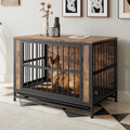 Dog Crate Furniture, Wooden Dog Crate Table, 38.9" Dog Kennel With 2 Sliding Doors And Thick Iron Door Frame, Decorative Pet Crate House For Large Medium Small Dog Indoor Use Rustic Brown Black Brown Large 41 70 Lbs Mdf Metal