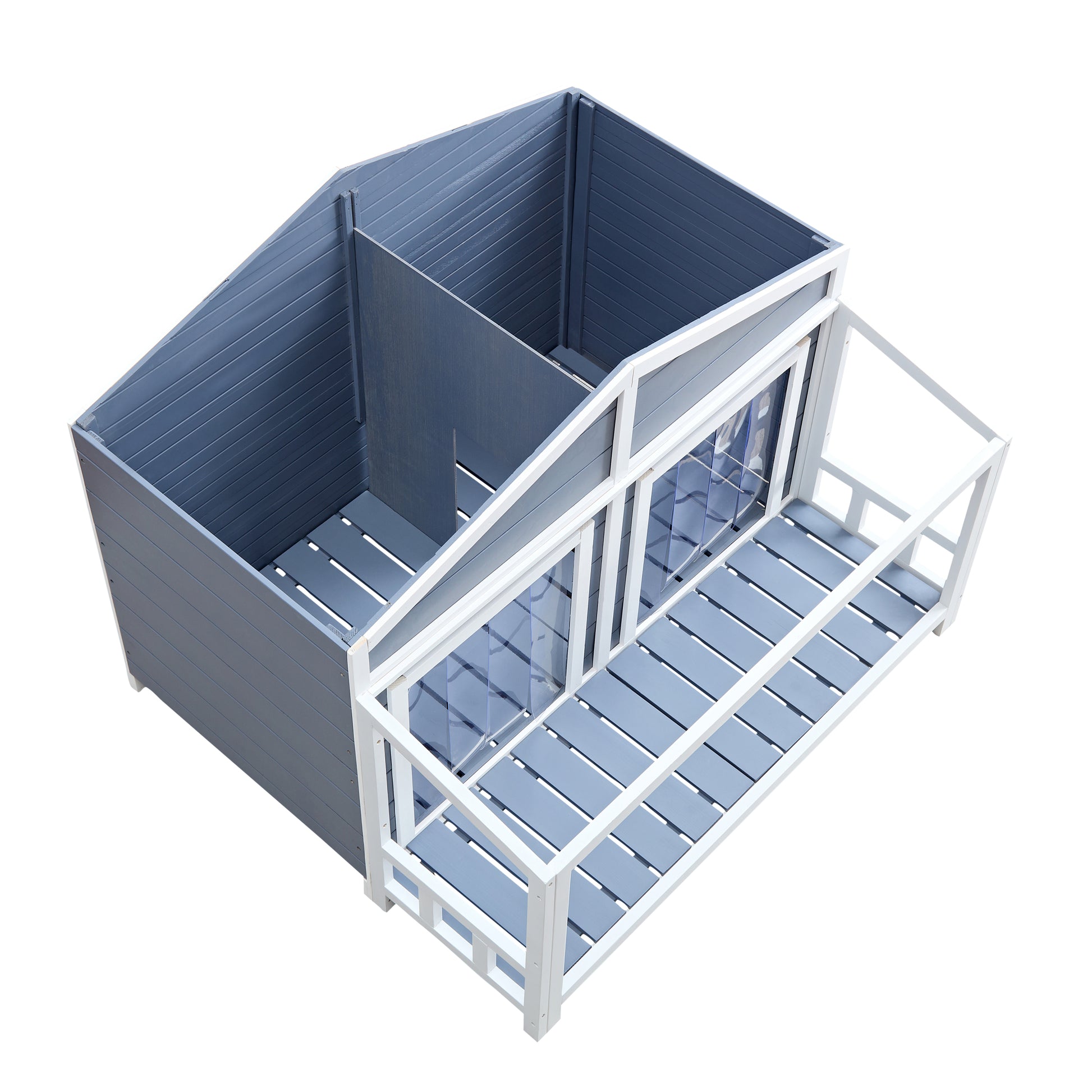 Dog House, Waterproof Dog Cage Kennel, Wooden Outdoor And Indoor Dog House, Log Cabin Style With Porch,Elevated Floor, 2 Doors, Pine Wood Blue Green Blue Pine