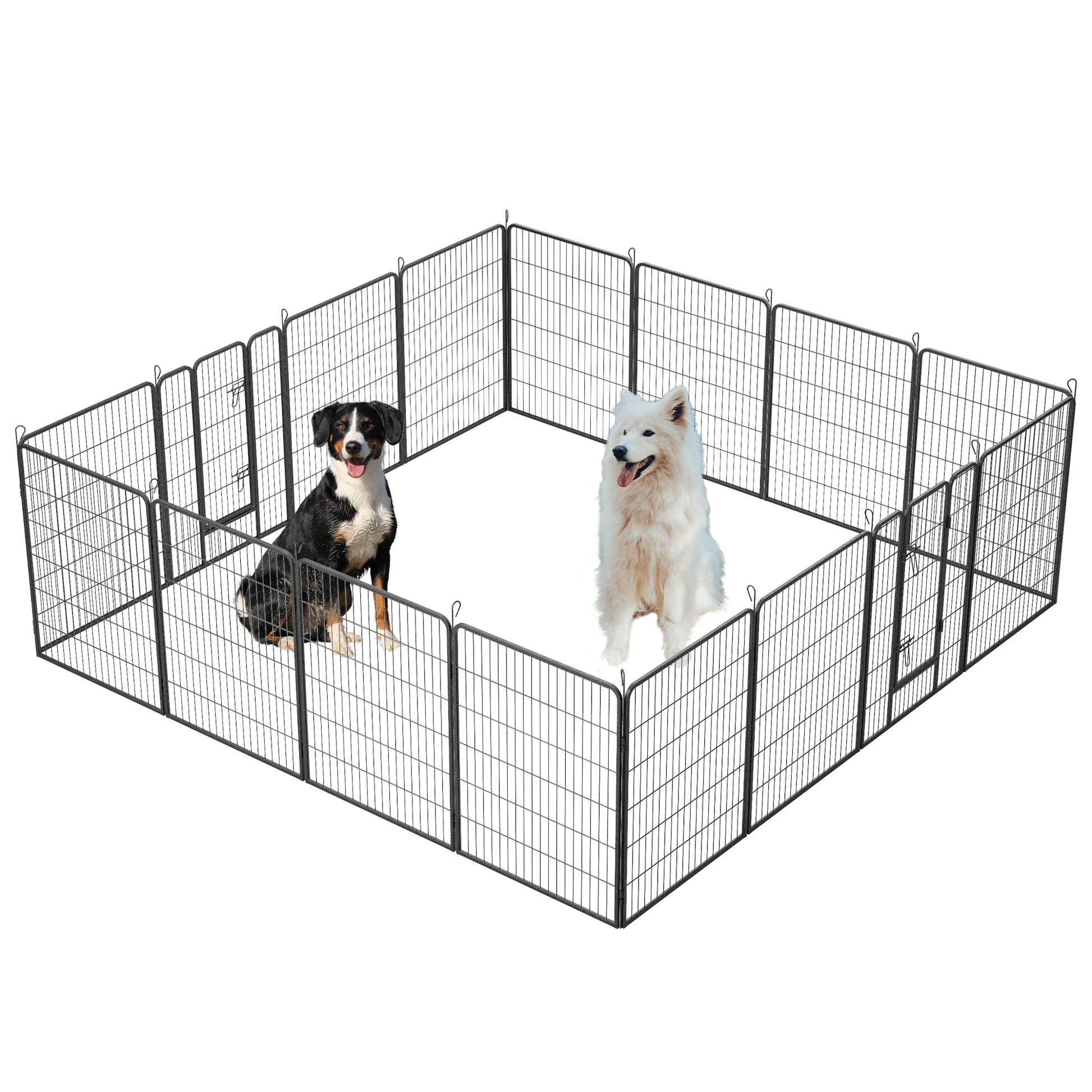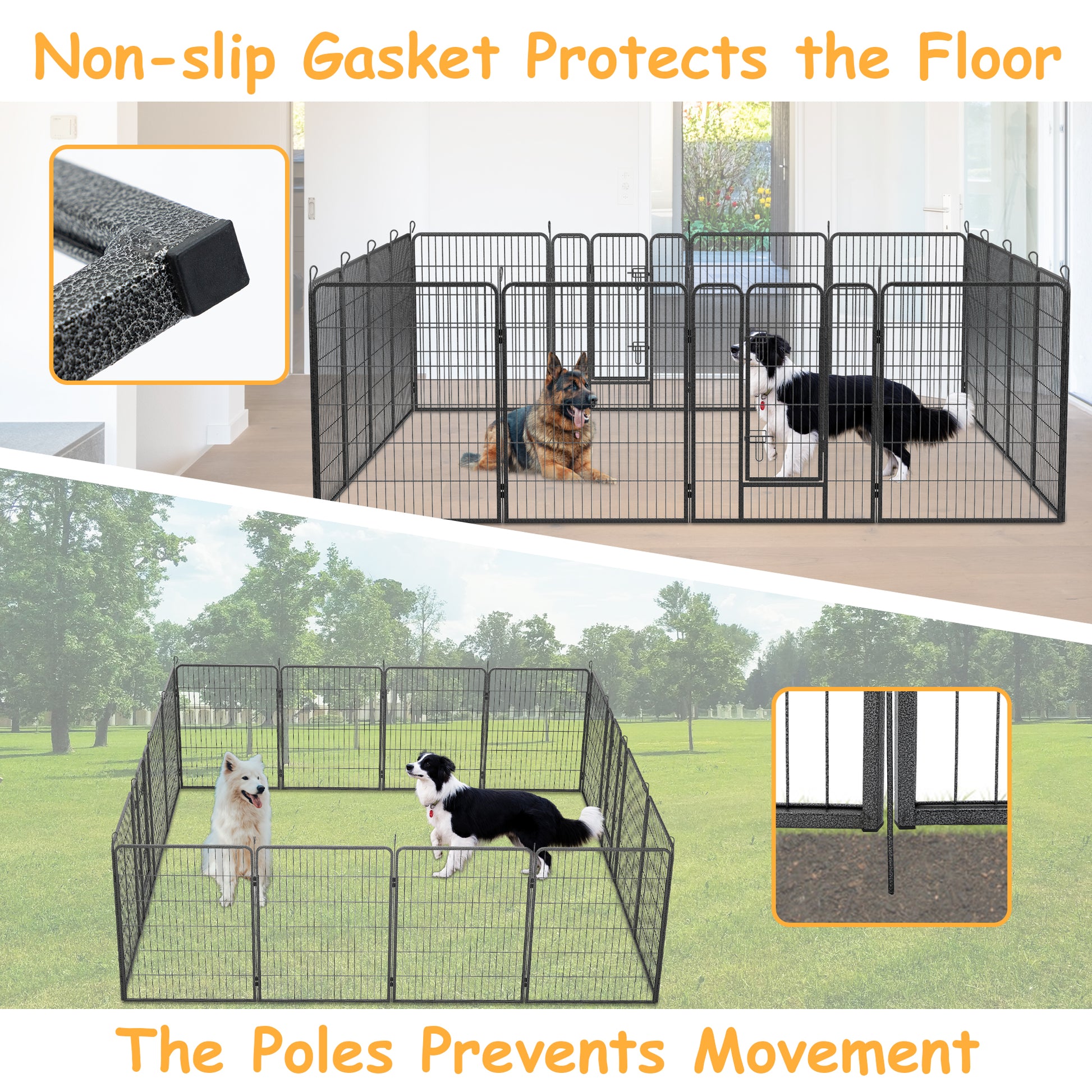 Dog Playpen Outdoor, 16 Panels Dog Pen 40" Height Dog Fence Exercise Pen With Doors For Large Medium Small Dogs, Portable Pet Playpen For Yard, Rv, Camping, Hammer Paint Finish Black Metal