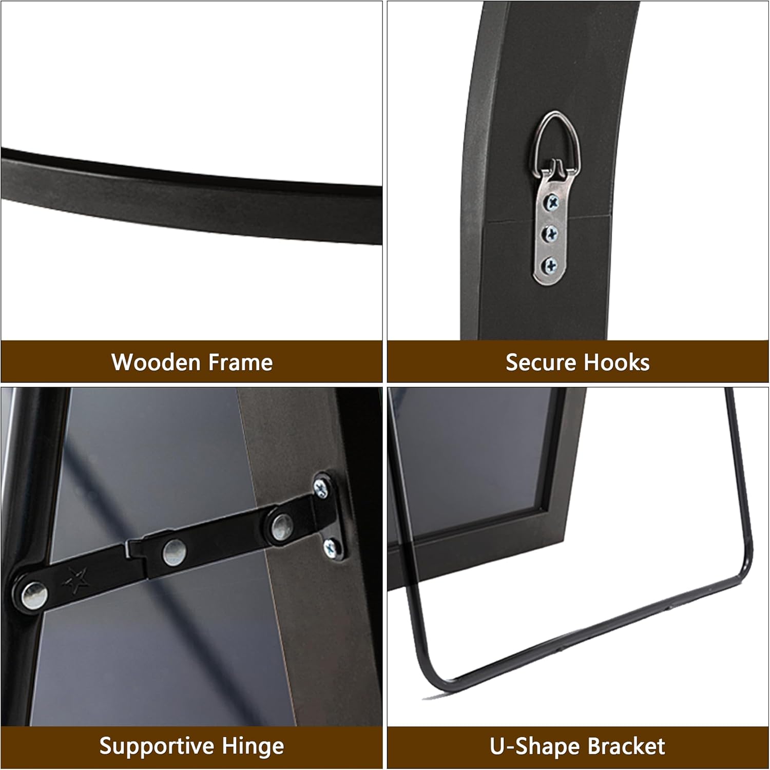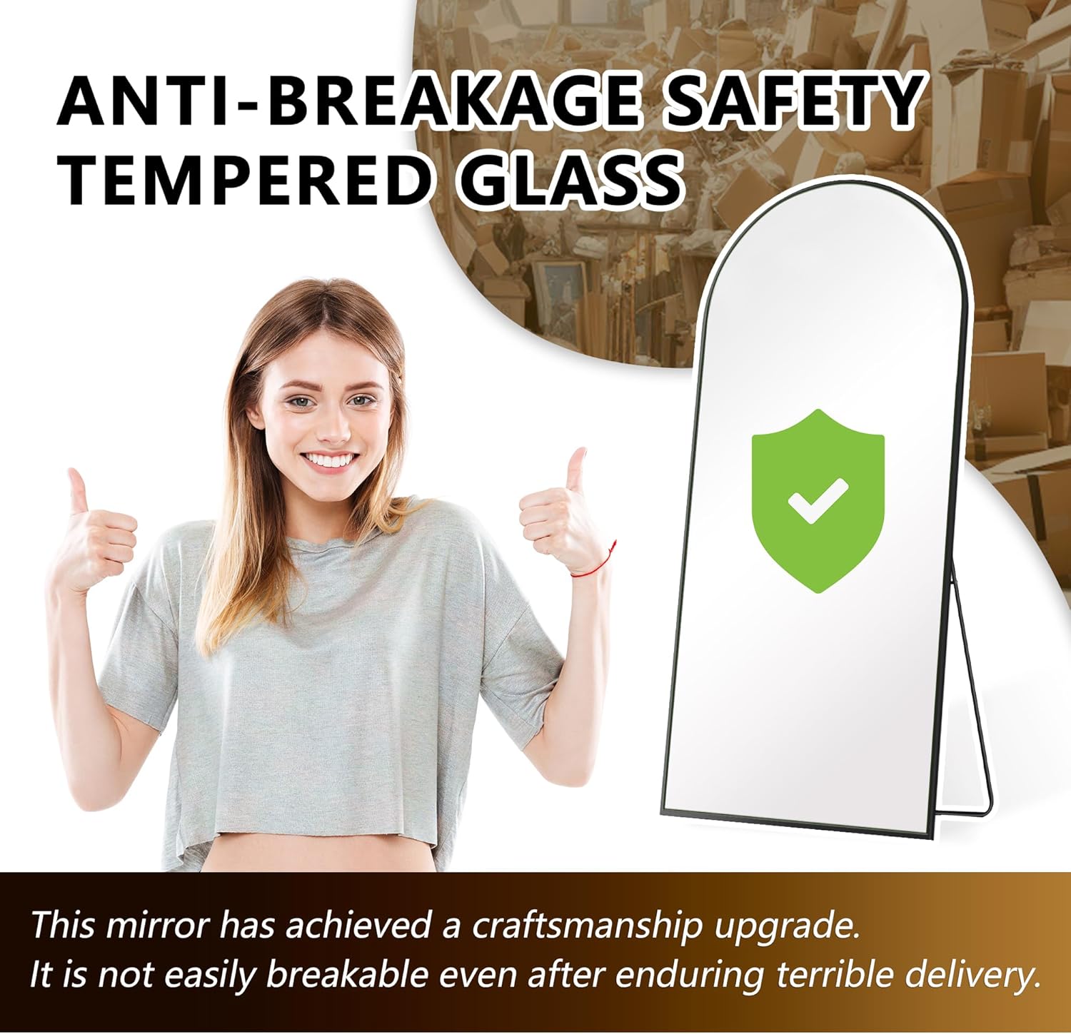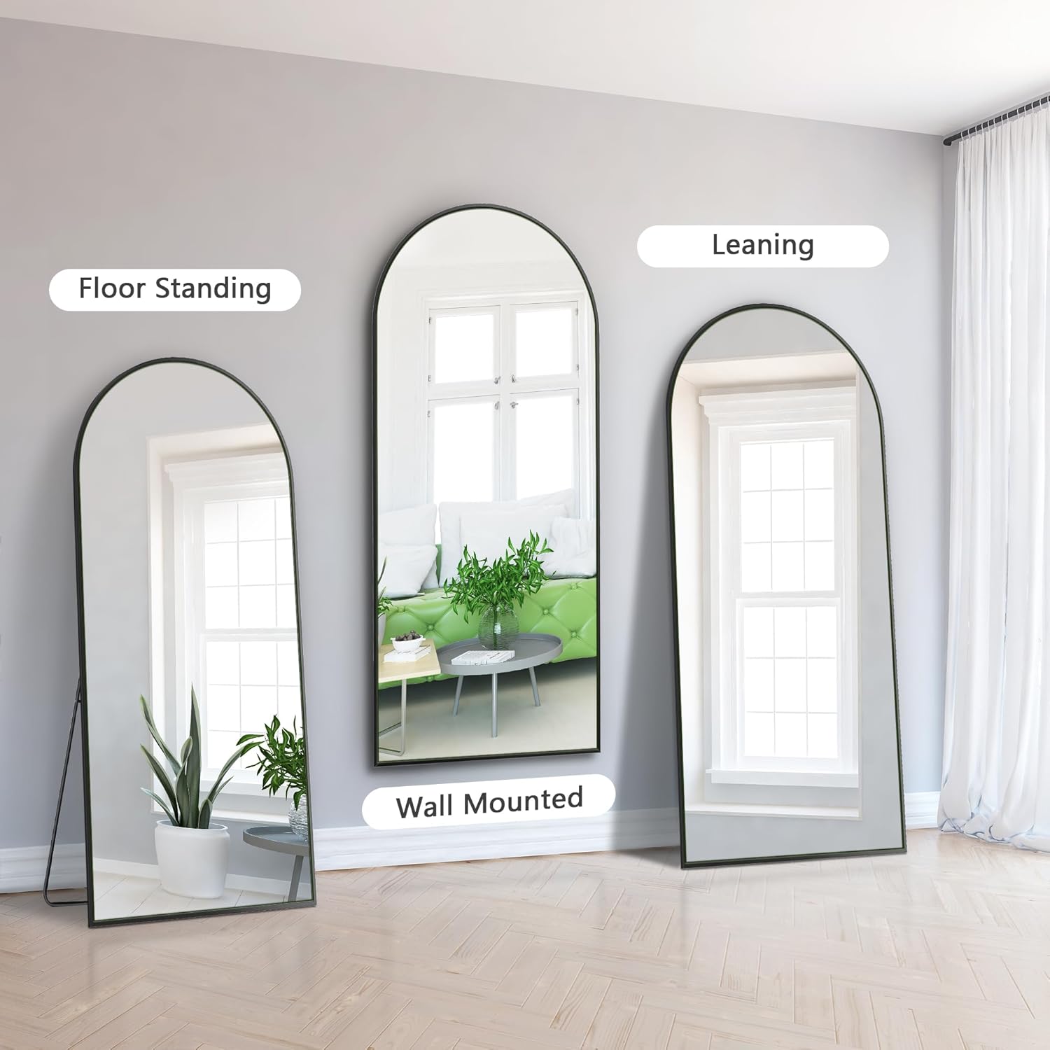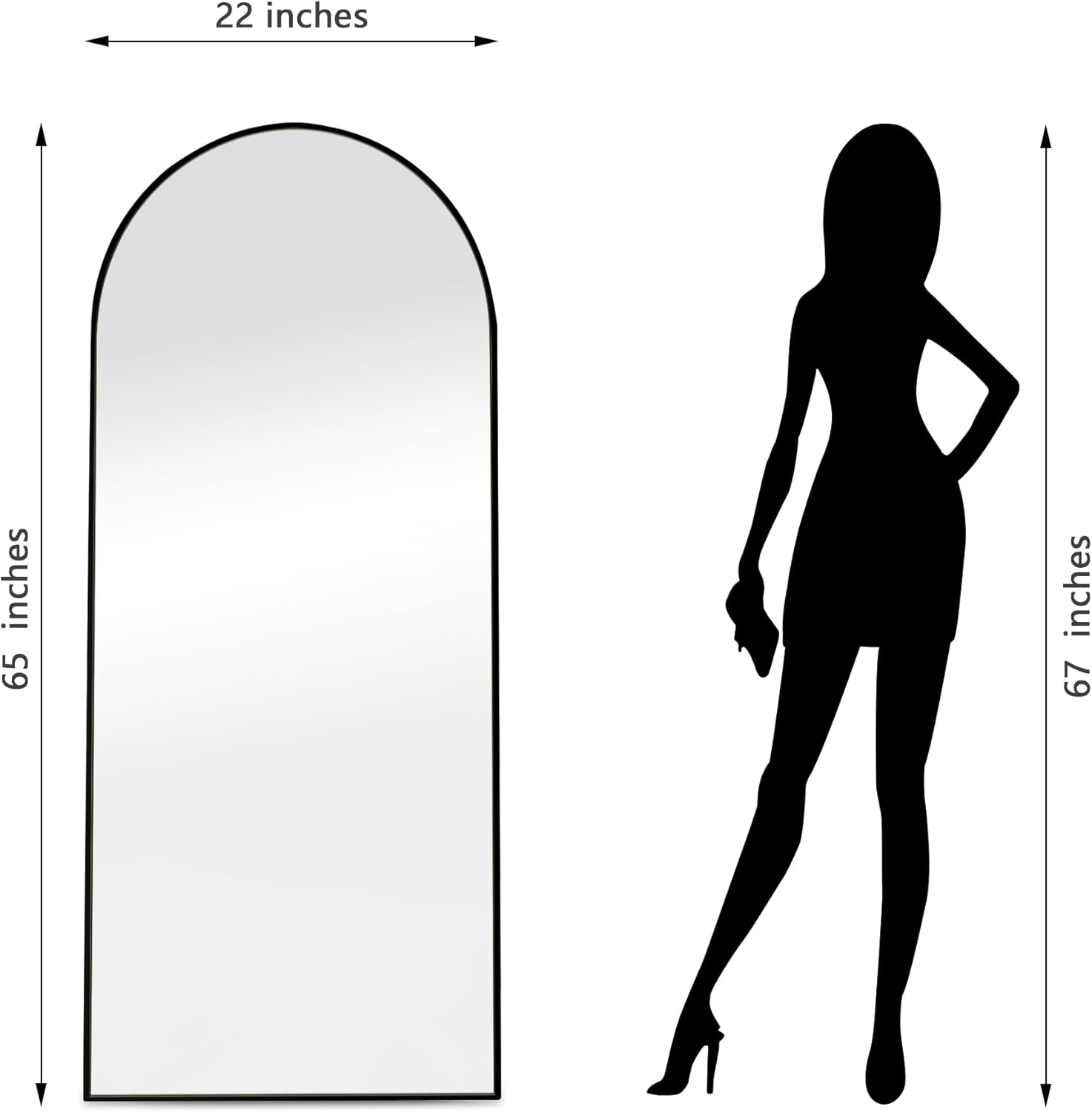 Dolonm 65X22 Inch Arch Full Length Mirror, Modern Design Standing Floor Mirror, Full Body Mirror For Living Room, Bedroom, Bathroom, Cloakroom, Hallway, Black Wooden Frame Black Mirror
