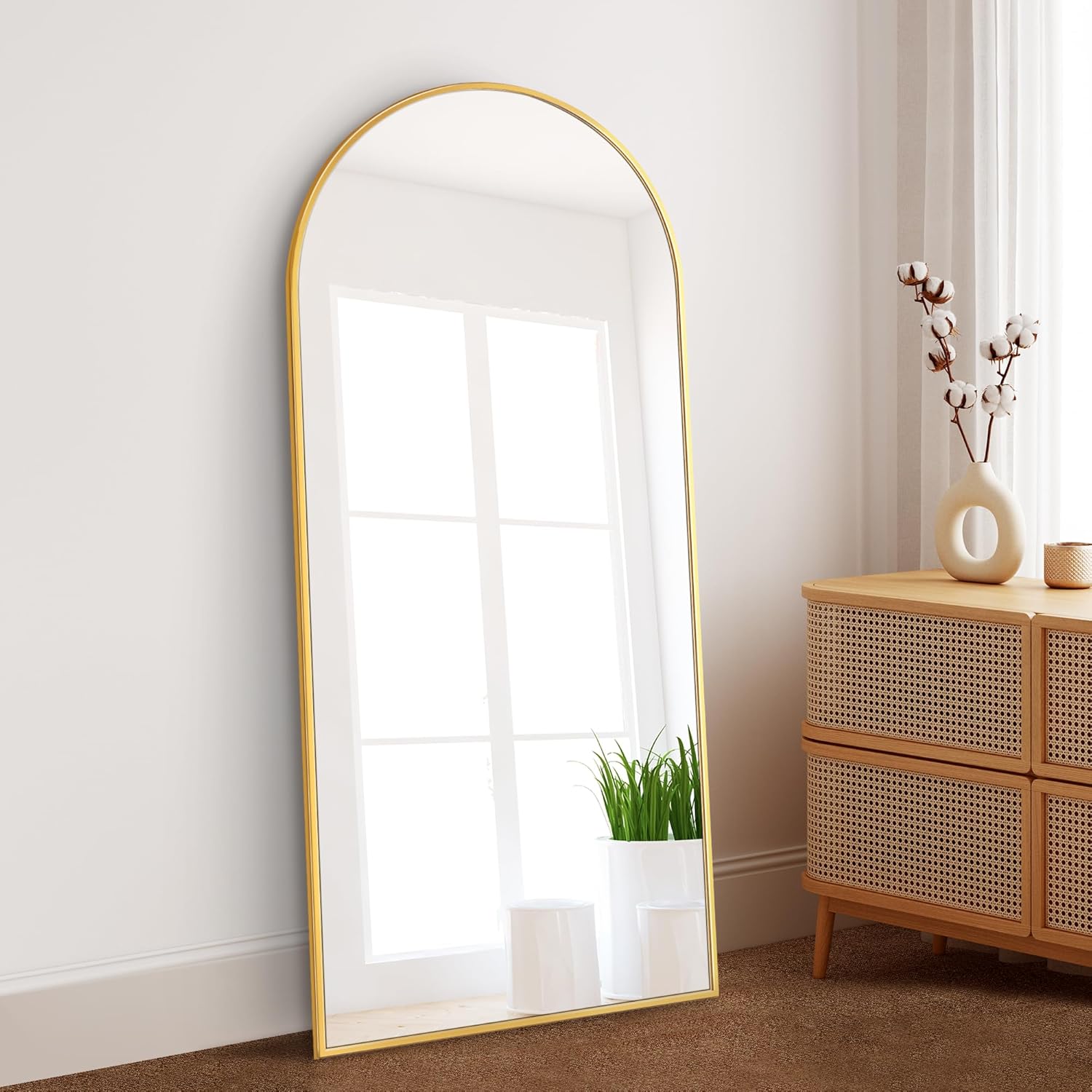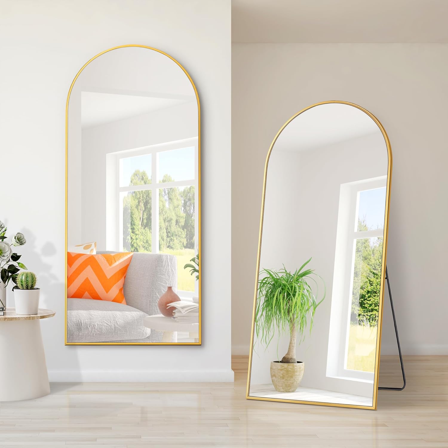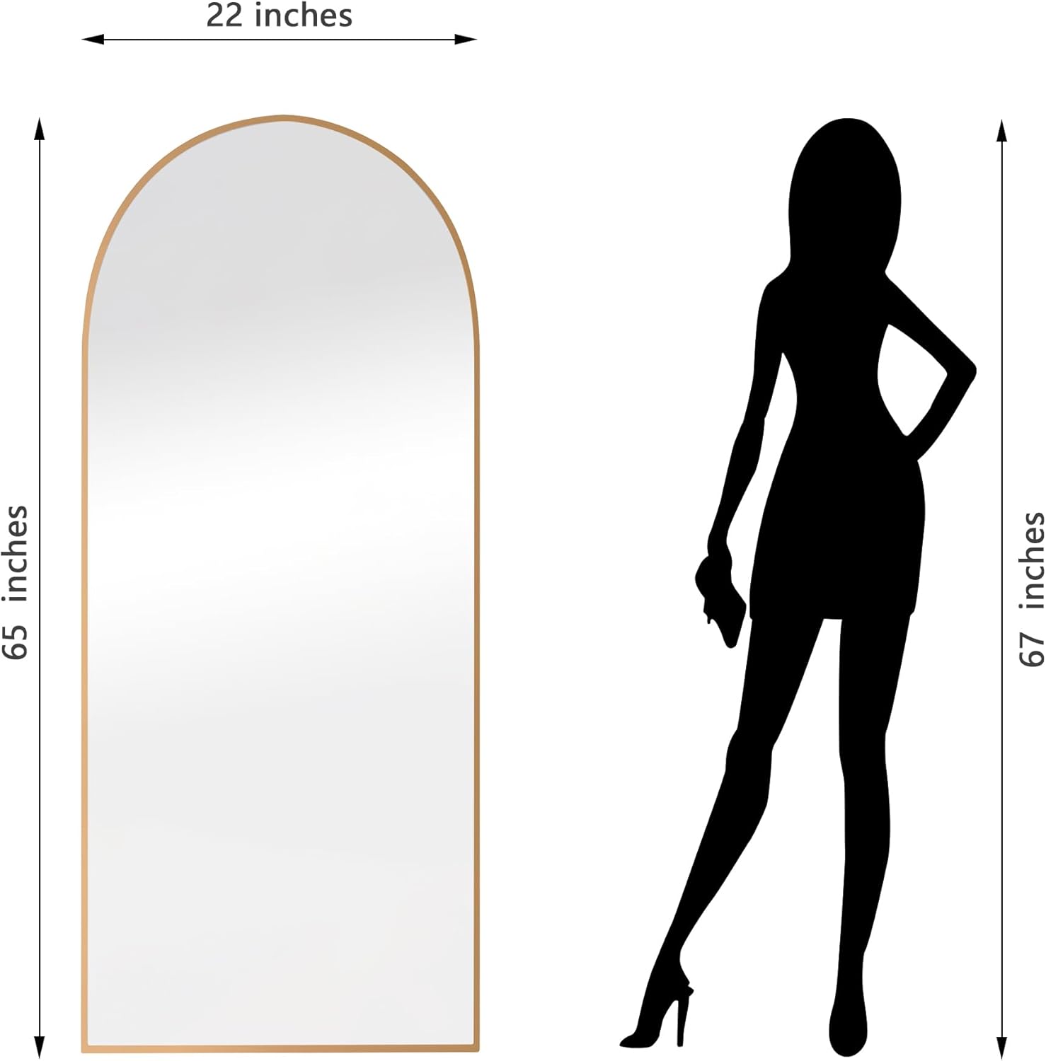 Dolonm 65X22 Inch Arch Full Length Mirror, Modern Design Standing Floor Mirror, Full Body Mirror For Living Room, Bedroom, Bathroom, Cloakroom, Hallway, Gold Aluminum Alloy Frame Golden Mirror