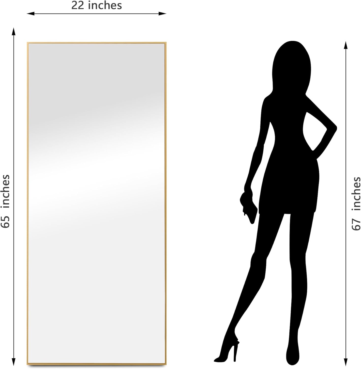 Dolonm 65X22 Inch Full Length Mirror, Modern Design Standing Floor Mirror, Full Body Mirror For Living Room, Bedroom, Bathroom, Cloakroom, Hallway, Gold Aluminum Alloy Frame Golden Mirror