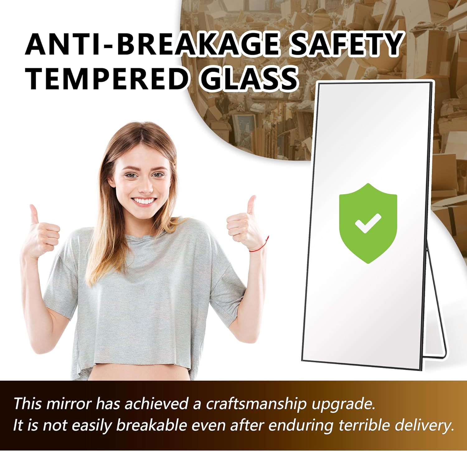 Dolonm 65X22 Inch Full Length Mirror, Modern Design Standing Floor Mirror, Full Body Mirror For Living Room, Bedroom, Bathroom, Cloakroom, Hallway, Black Aluminum Alloy Frame Black Mirror