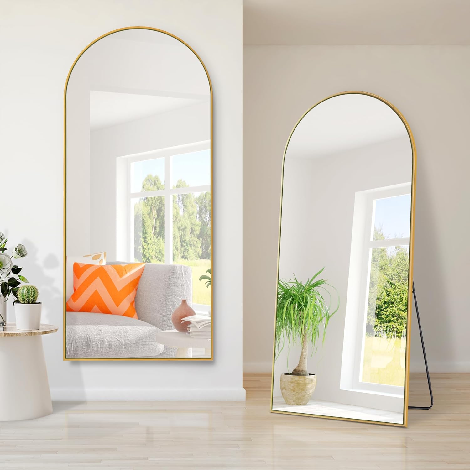 Dolonm 71X24 Inch Arch Full Length Mirror, Modern Design Standing Floor Mirror, Full Body Mirror For Living Room, Bedroom, Bathroom, Cloakroom, Hallway, Gold Wooden Frame Golden Mirror