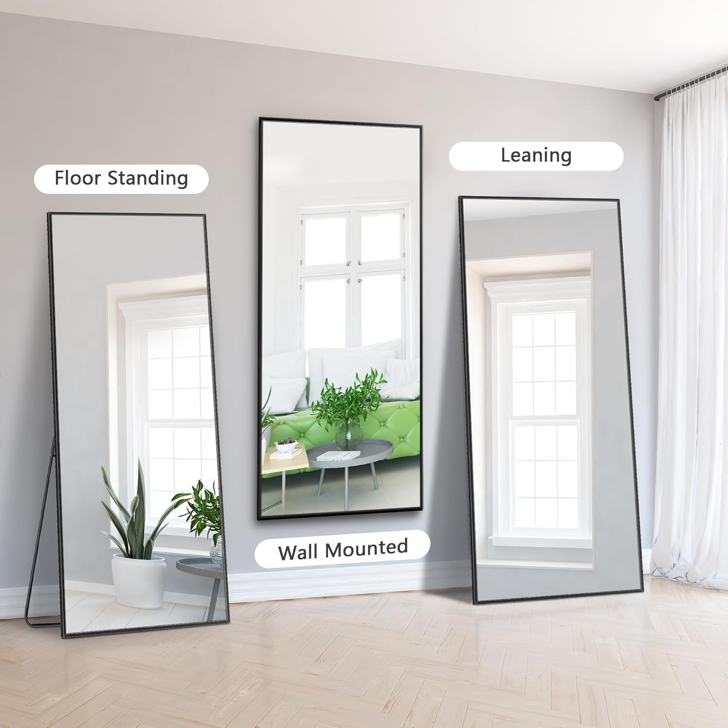Dolonm Full Length Mirror With Stand, 71"X24" Aluminum Alloy Body Mirror And Shatter Proof Glass Made, Free Standing, Leaning Or Wall Mounted Mirror For Bedroom, Dressing Room And Living Room, Black Black Mirror