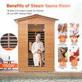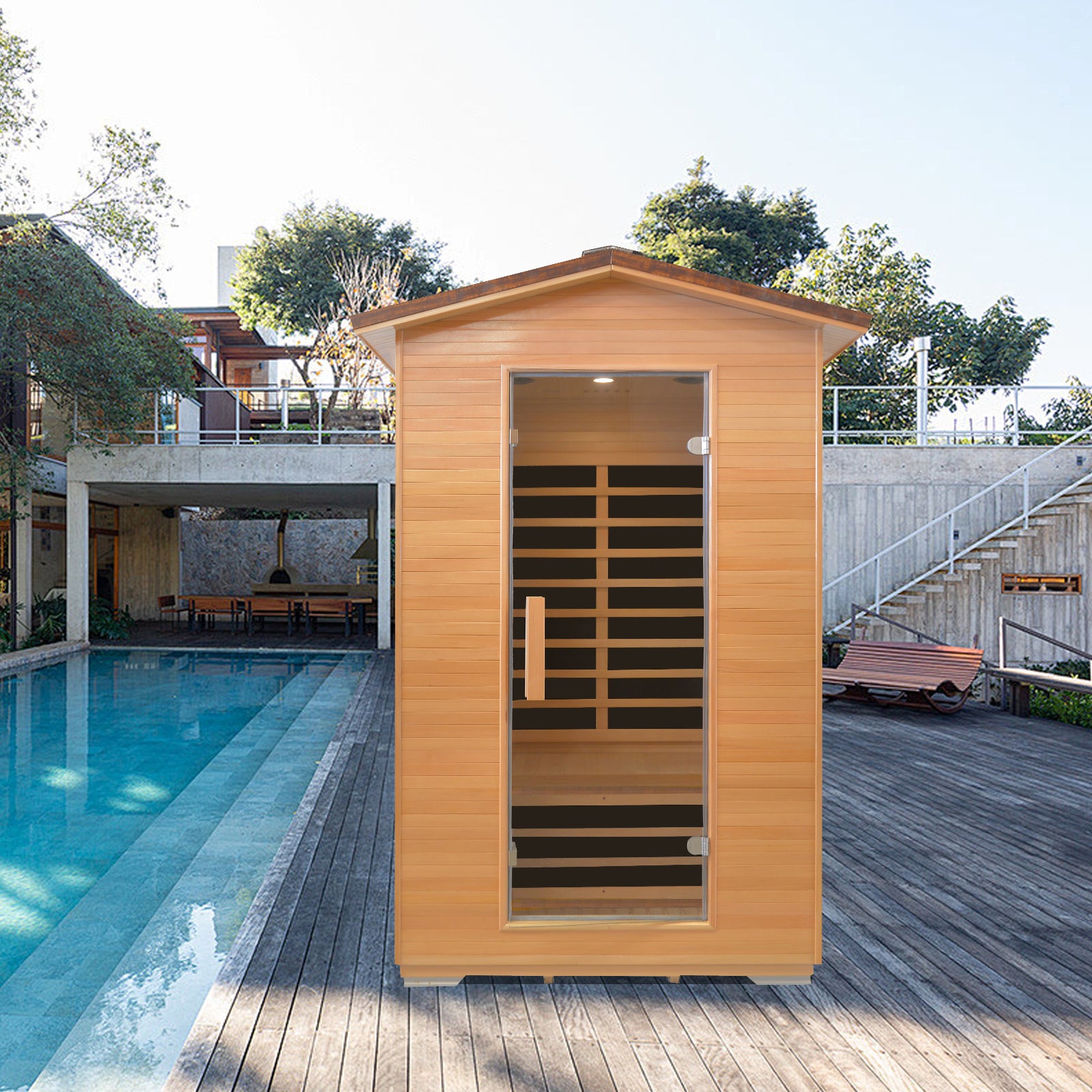 Double Abies Wood Outdoor Sauna Room Light Brown Multi Gun Metal Ceramic Tile Iron