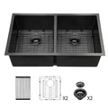 Double Bowl 50 50 Undermount Sink 33"X19" Gunmetal Black Double Bowl Kitchen Sink 16 Gauge With Two 10" Deep Basin Gunmetal Black Stainless Steel