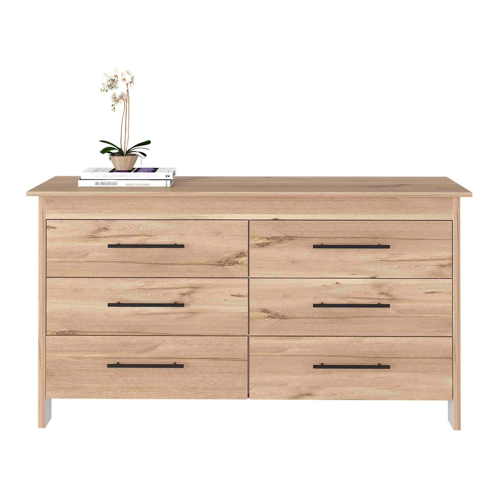 Double Dresser, 6 Drawer, Superior Top, Light Oak White Multicolor Solid Wood Mdf Engineered Wood