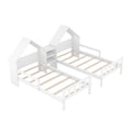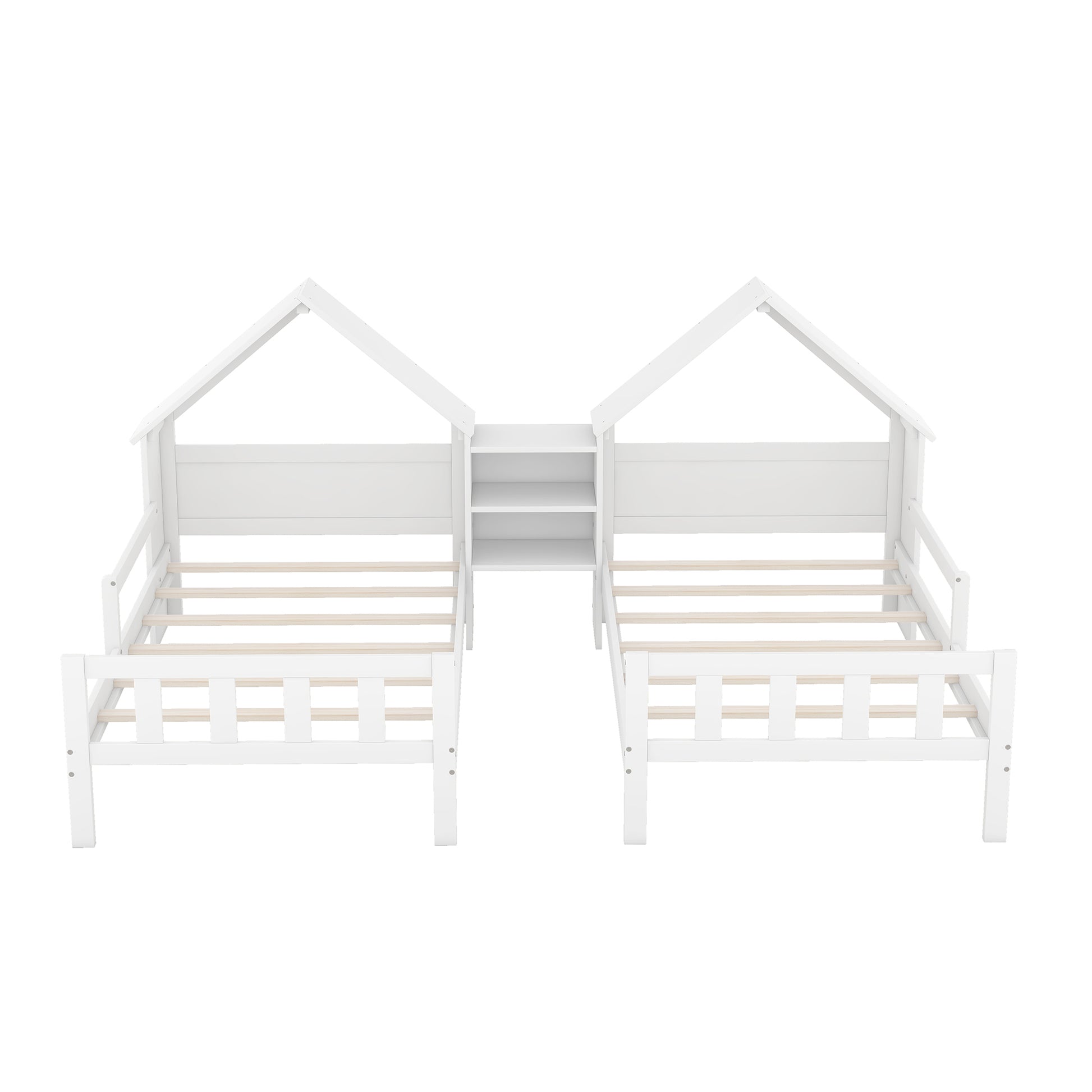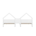 Double Twin Size Platform Bed With House Shaped Headboard And A Built In Nightstand, White Box Spring Not Required Twin White Wood Bedroom Bed Frame Solid Wood Mdf