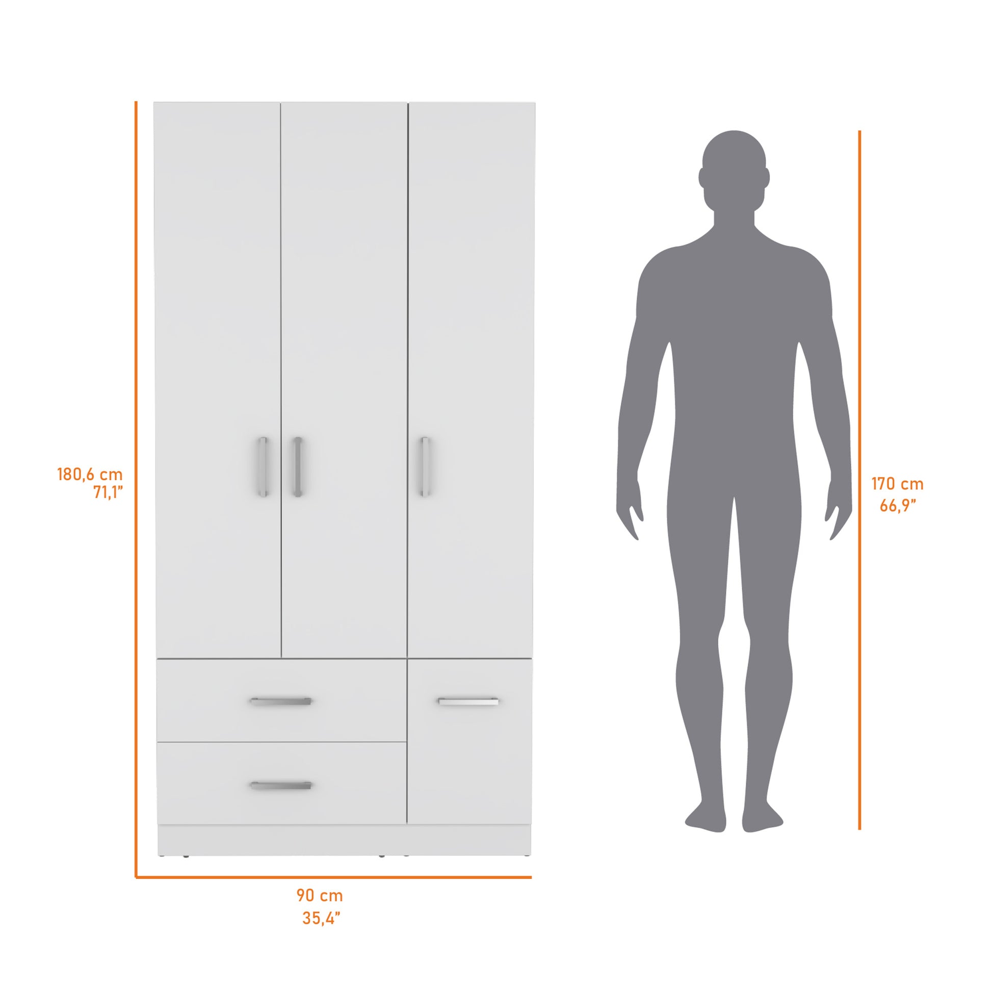 Douglas Armoire In Melamine, Two Drawers, Hanging Rod And 4 Doors. White Bedroom Contemporary Particle Board Melamine