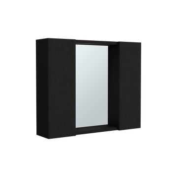 Draco Medicine Cabinet, Mirror, Double Door, One External Shelf Black 2 1 Bathroom Wall Mounted Modern Mdf Engineered Wood