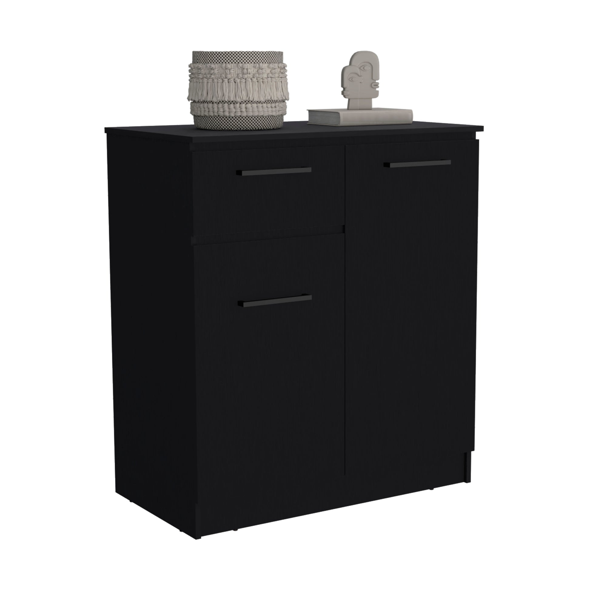 Dresser With 2 Door And Single Drawer, Black Black Solid Wood Mdf Engineered Wood