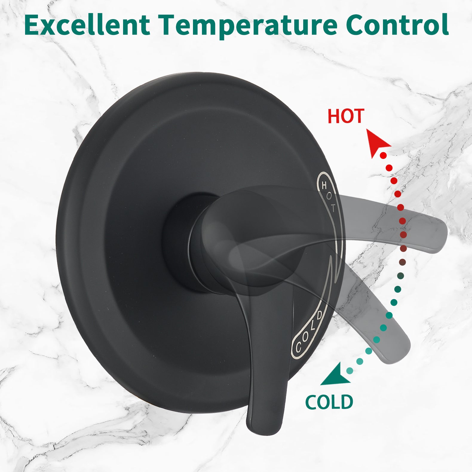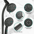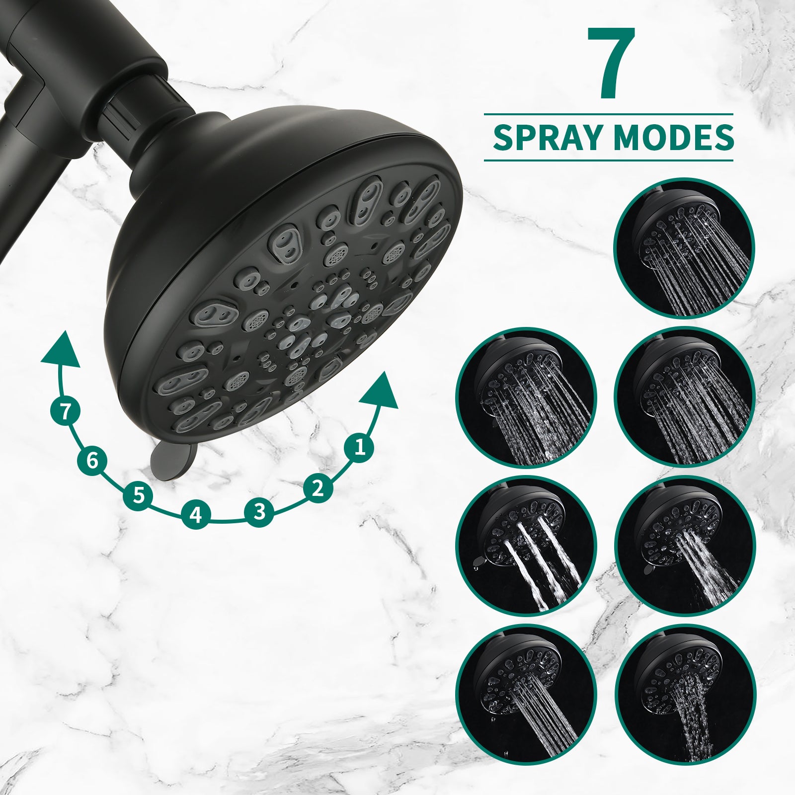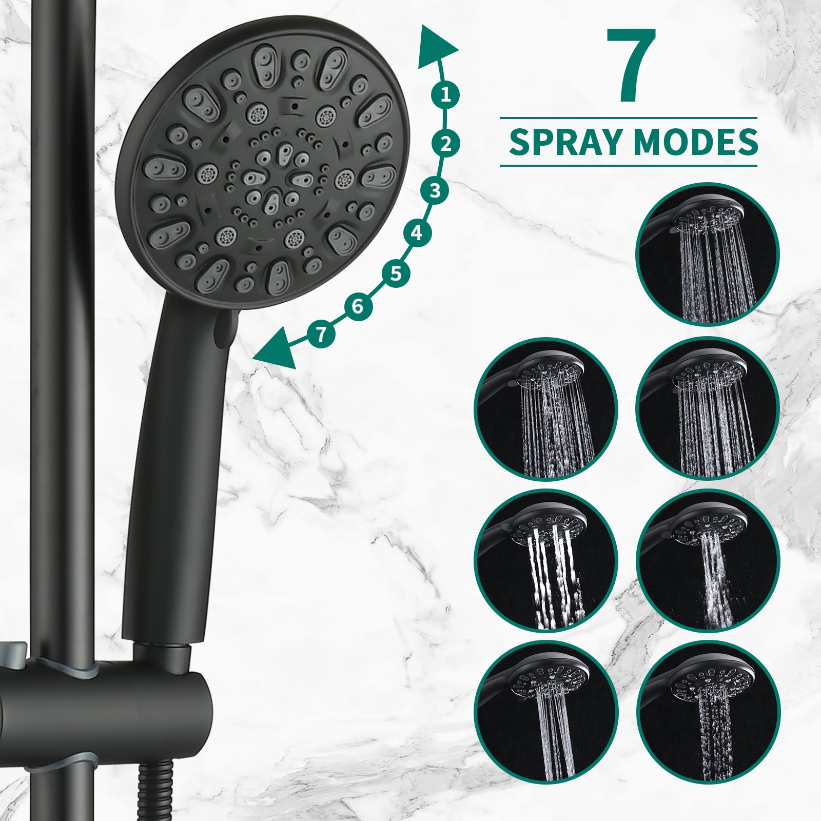 Drill Free Stainless Steel Slide Bar Combo Rain Showerhead 7 Setting Hand, Dual Shower Head Spa System With Tup Spout Rough In Valve Included Matte Black Abs