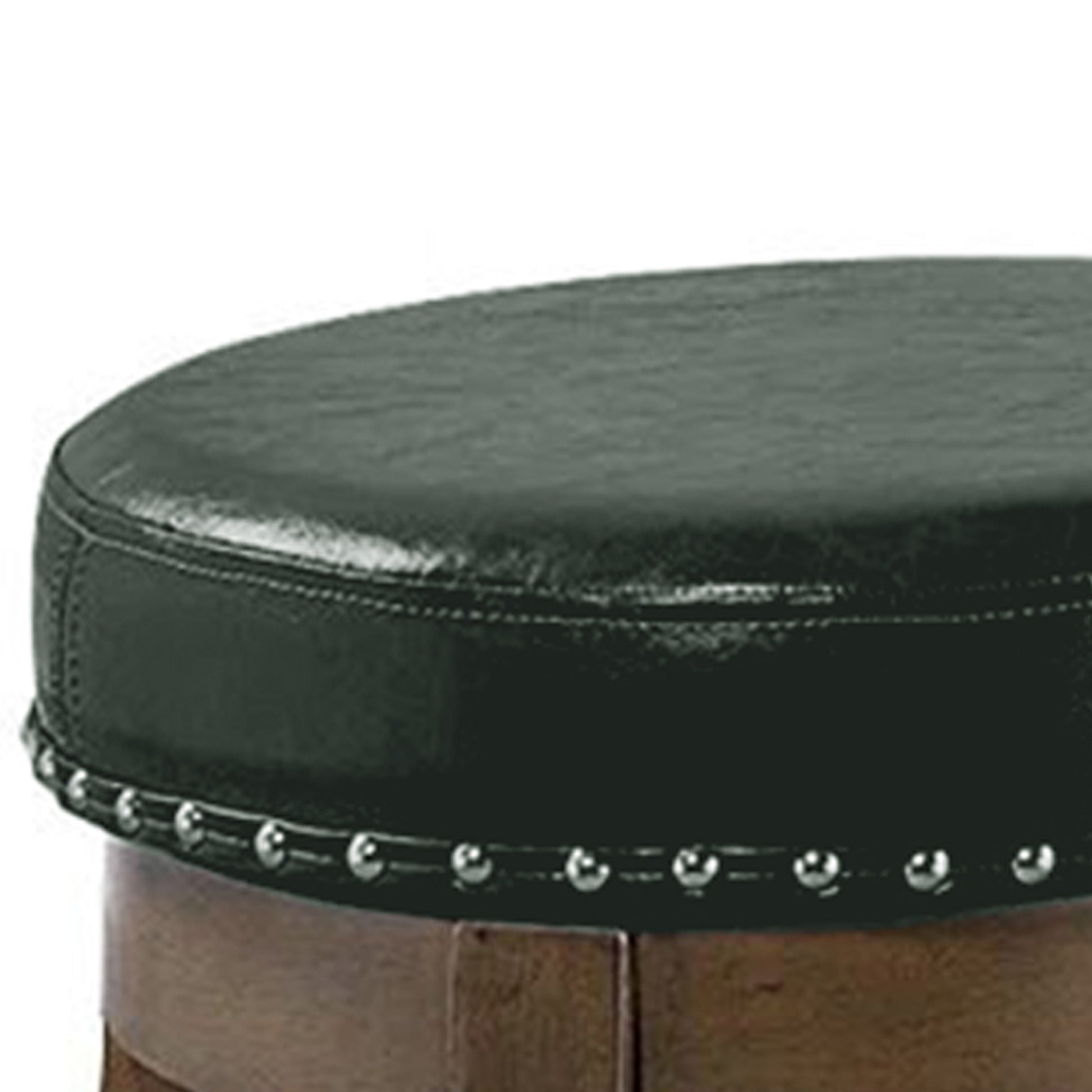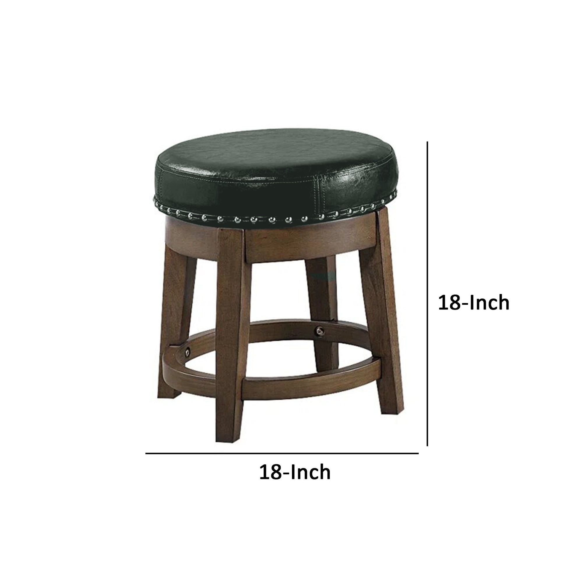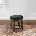 Drue 18 Inch Set Of 2 Swivel Stools, Trim, Green Faux Leather Dark Green Solid Wood