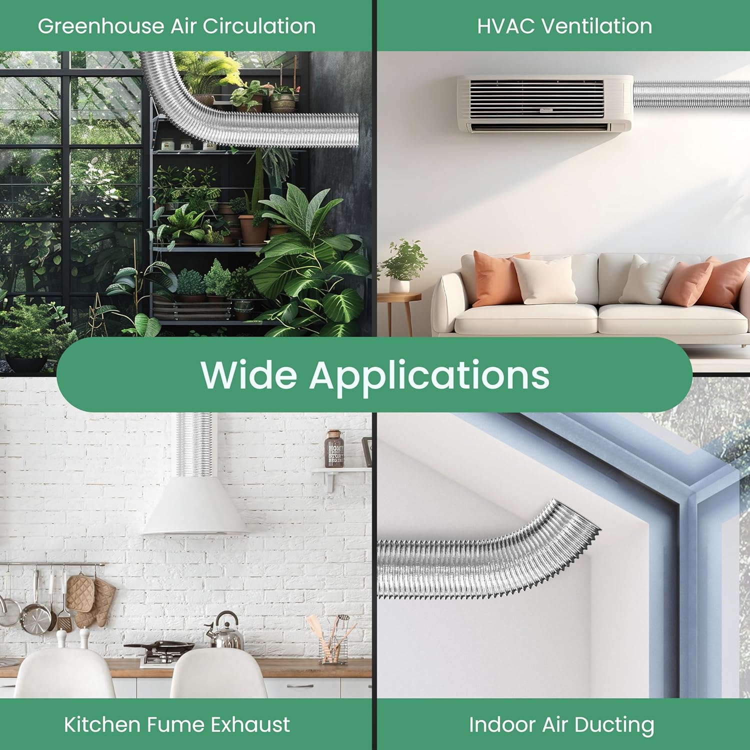 Dryer Vent Hose, Flexible 12 Inch Aluminum Ducting, Heavy Duty Three Layer Protection, 25 Feet Long For Heating Cooling Ventilation And Exhaust, 12" X 25', Silver Silver Pvc