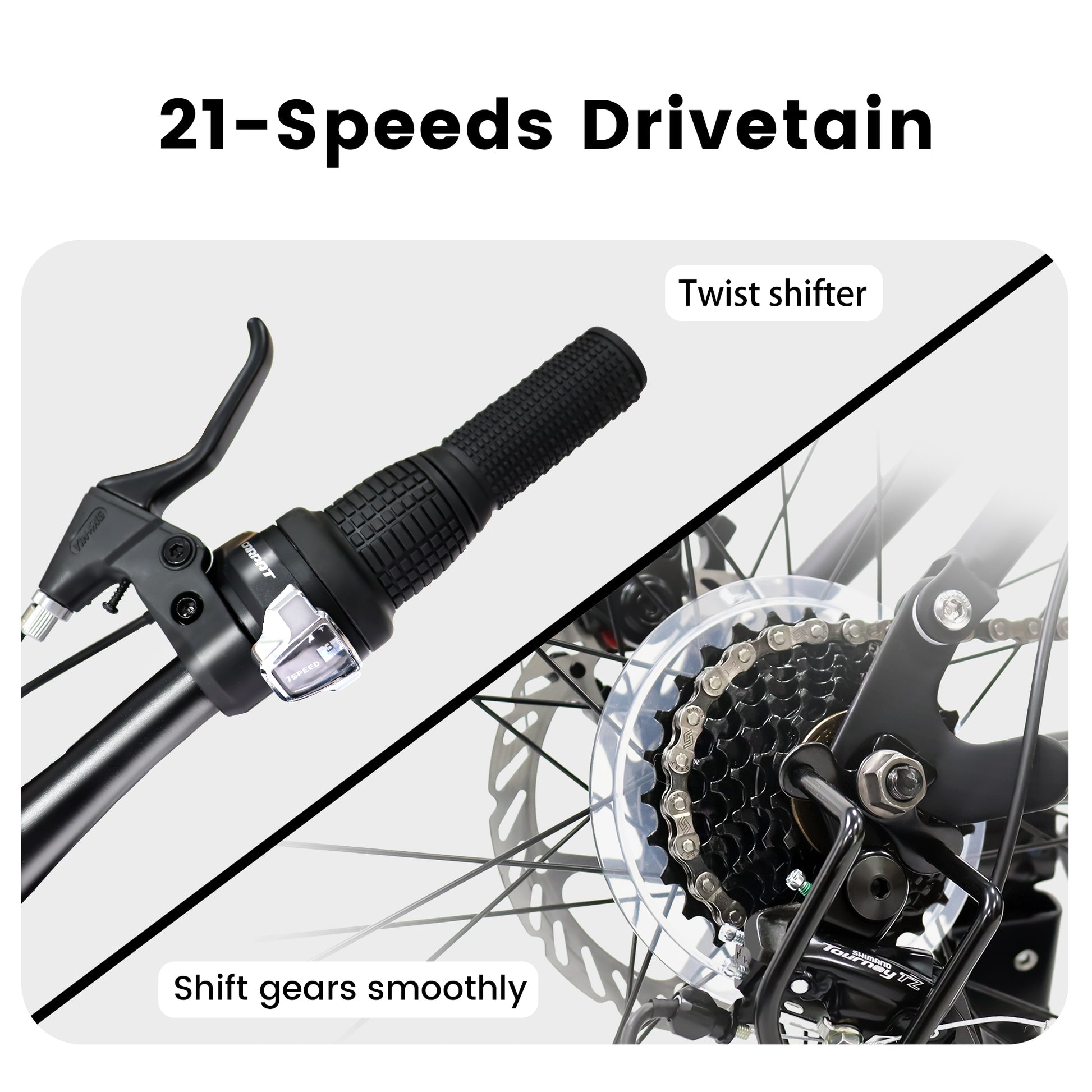 Ecarpat Mountain Bike 24 Inch Wheels, 21 Speed Full Suspension Mens Womens Trail Commuter City Mountain Bike, High Carbon Steel Frame Disc Brakes Grip Shifter Front Fork Rear Shock Absorber Bicycles Cycling Black Without Durable Garden & Outdoor Classic