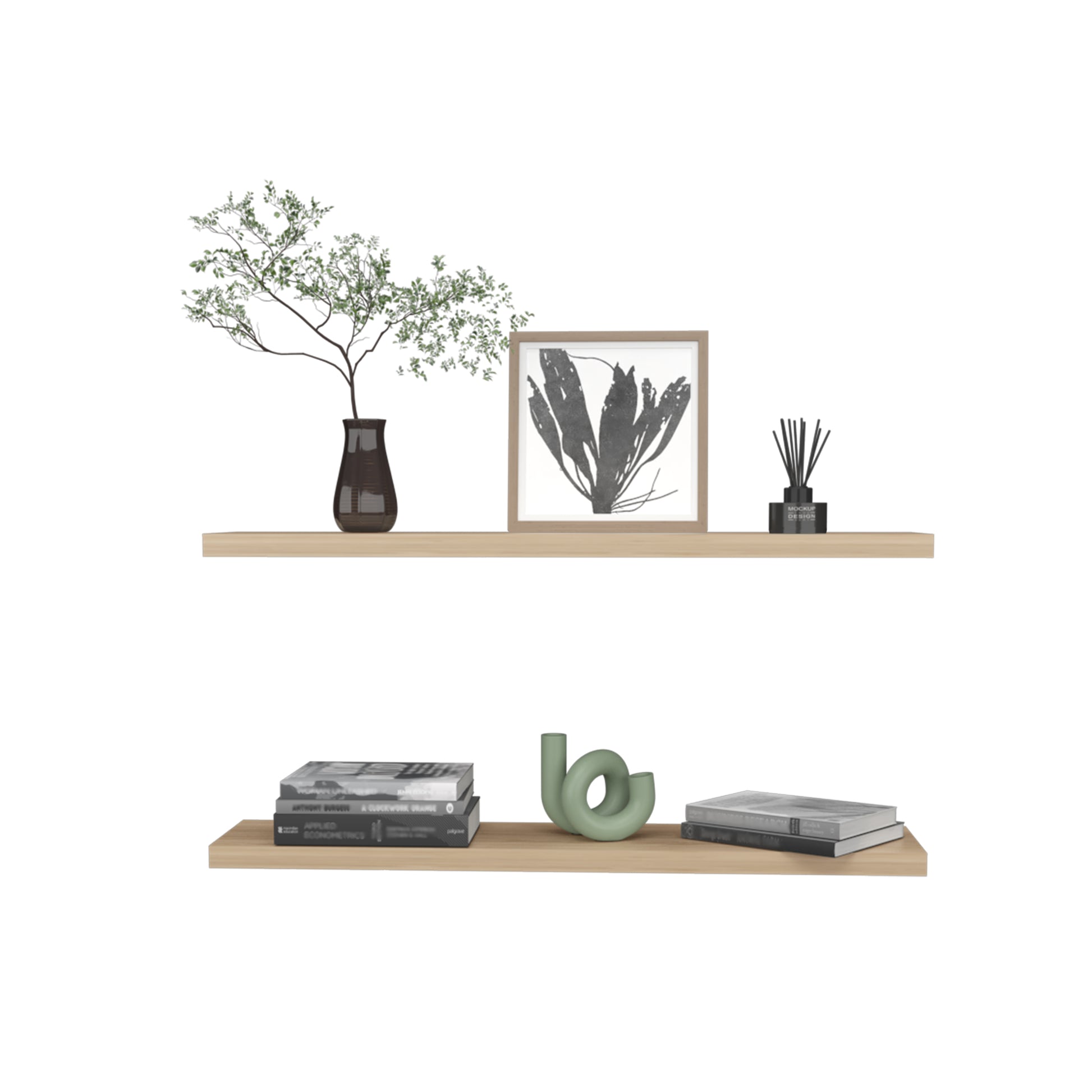 Ecco 47" Wide Floating Shelves Set Of 2, Shelves For Wall Decor For Bedroom, Bathroom Storage Shelves, Book Shelves For Living Room 2 Or Less Beige Horizontal Primary Living Space Open Back Modern