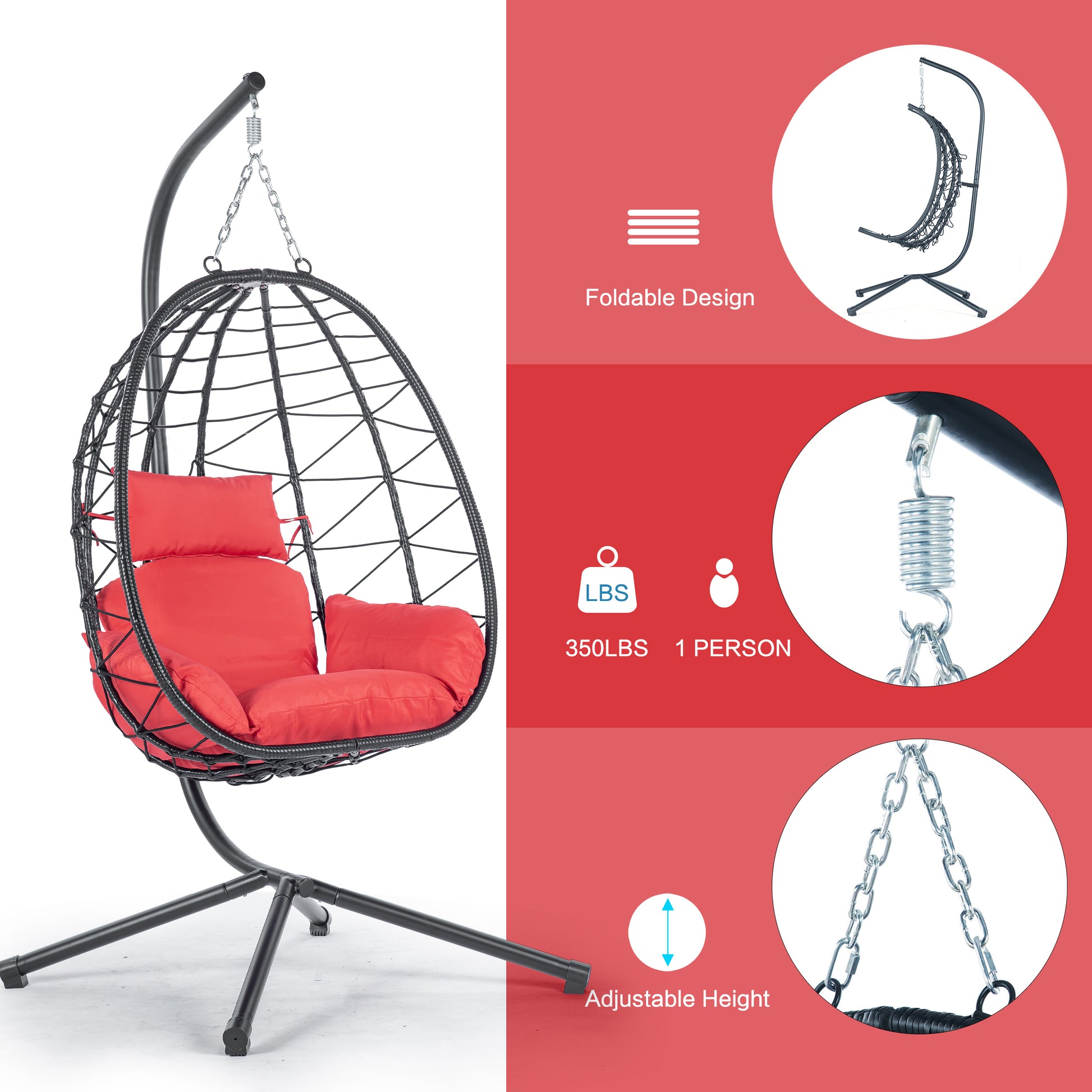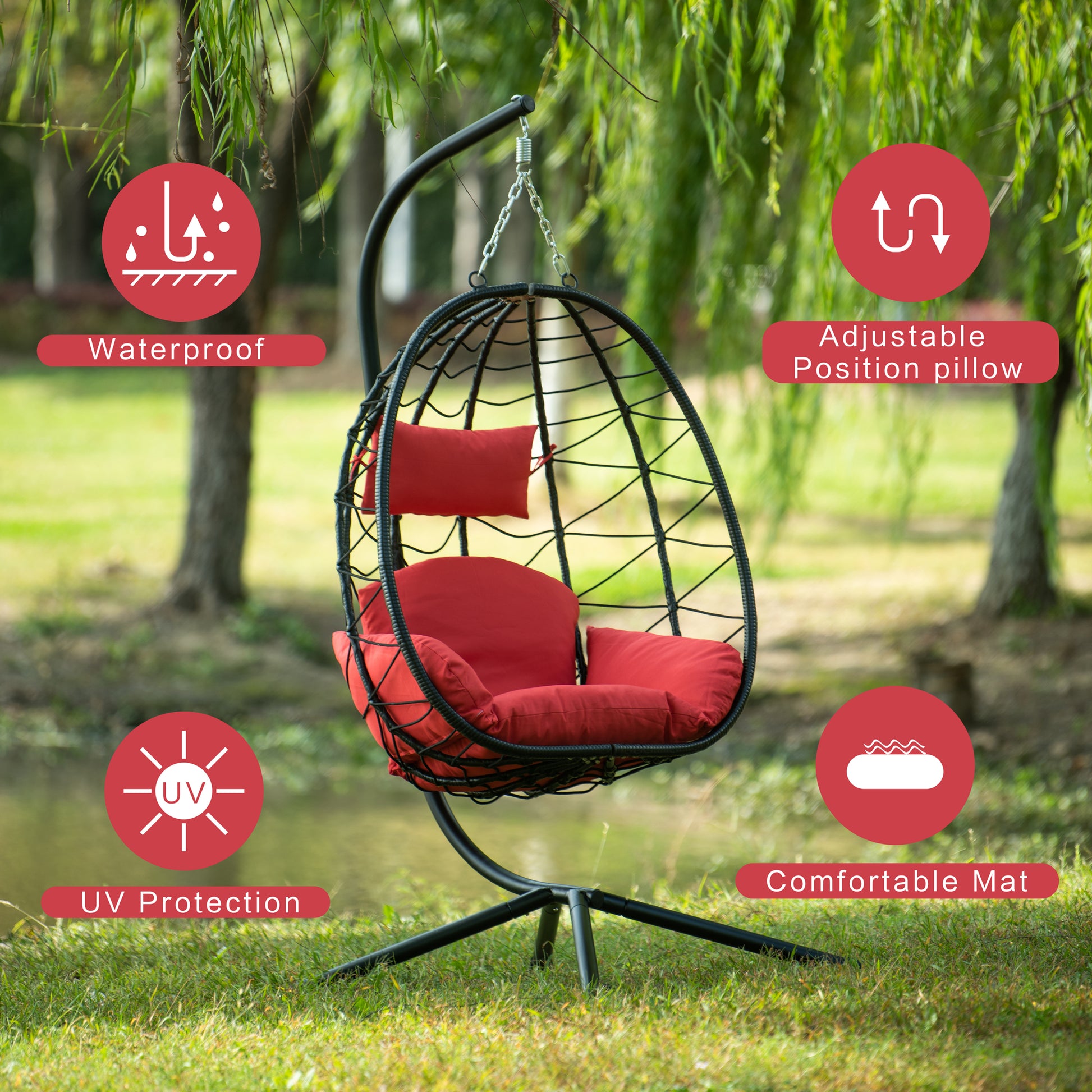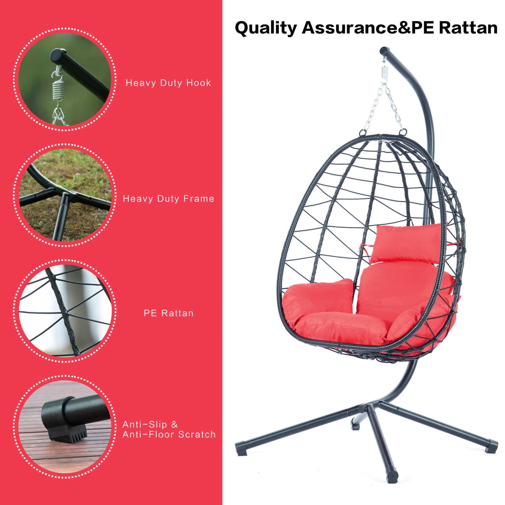 Egg Chair With Stand Indoor Outdoor Swing Chair Patio Wicker Hanging Egg Chair Hanging Basket Chair Hammock Chair With Stand For Bedroom Living Room Balcony Yes Sectional Red Water Resistant Frame Water Resistant Cushion Garden & Outdoor American Design