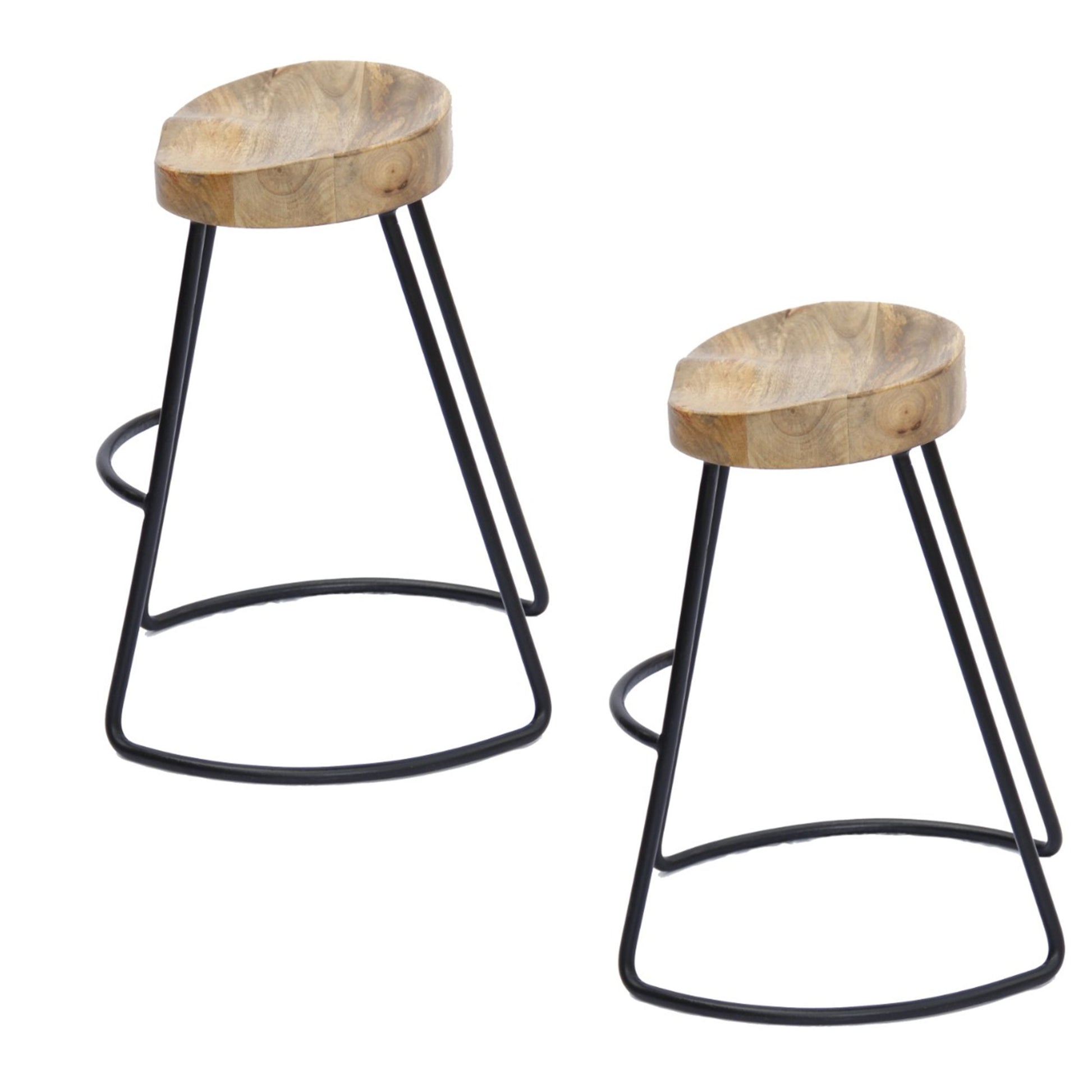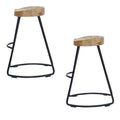 Ela 30 Inch Mango Wood Industrial Barstool, Saddle Seat, Iron Frame, Set Of 2, Brown, Black Walnut Black Metal & Wood