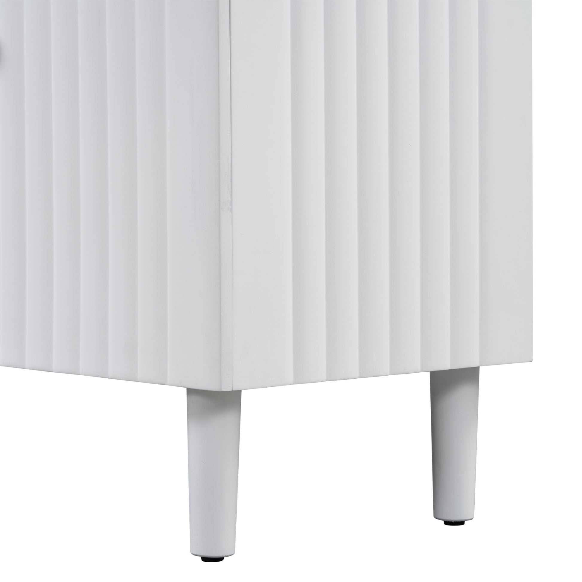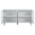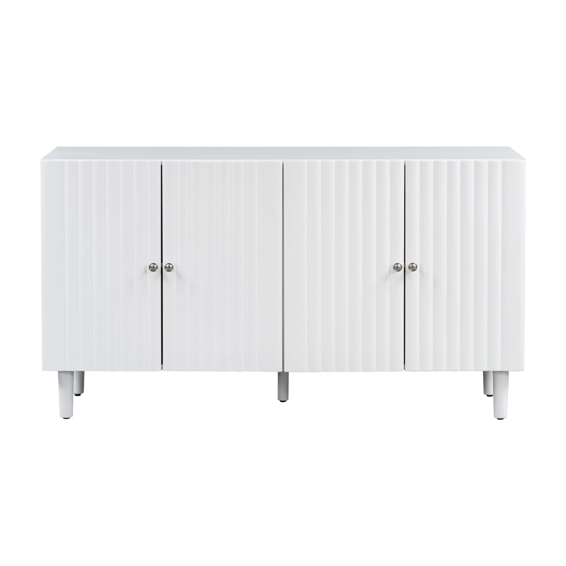 Elegant Four Door Sideboard With Wavy Pattern Doors, Cylindrical Legs, And Sleek Metal Handles, Adjustable, Suitable For Study, Entryway And Living Room White Primary Living Space American Design