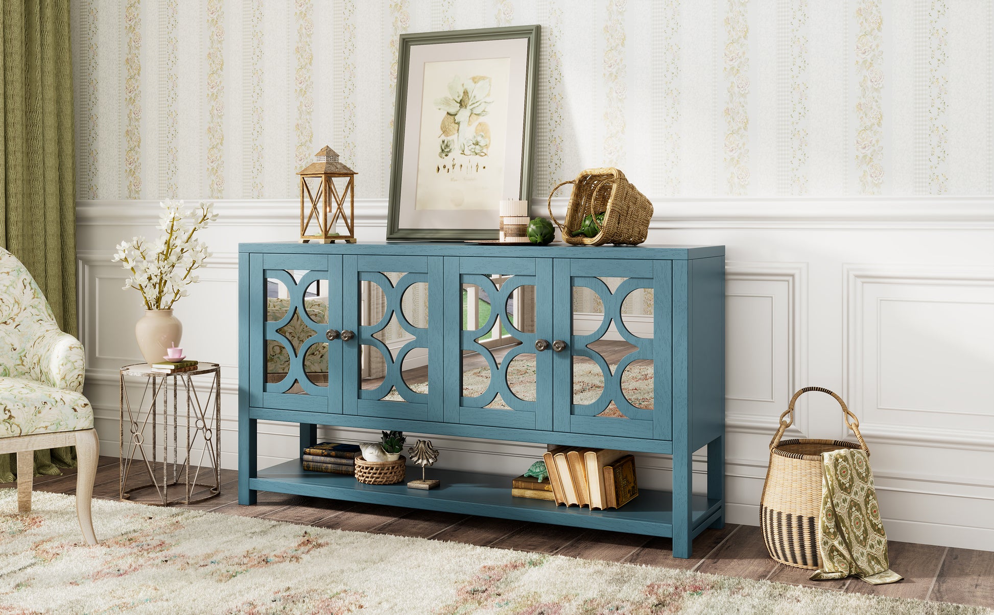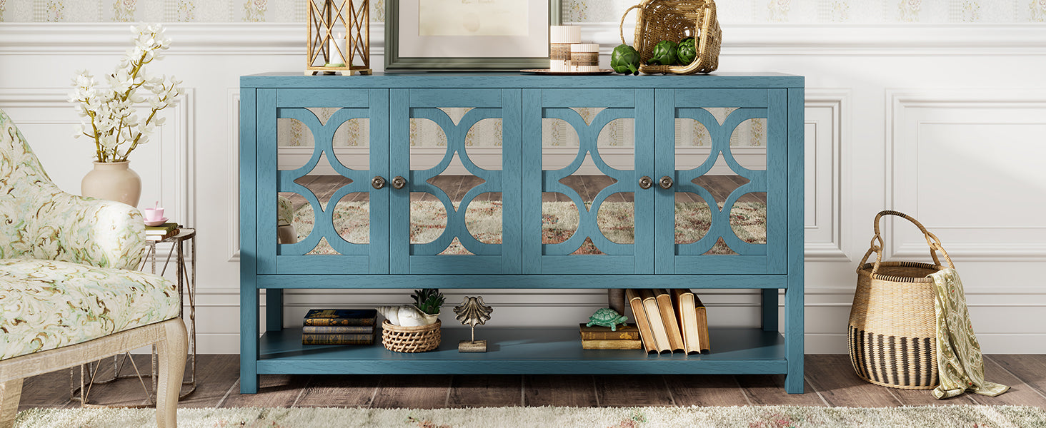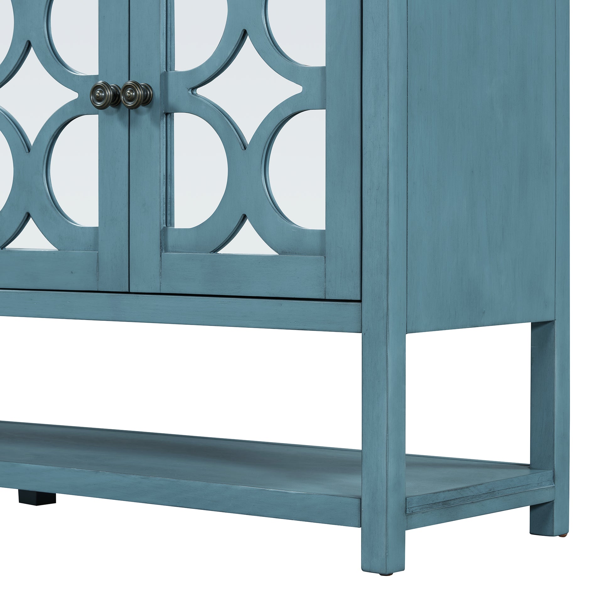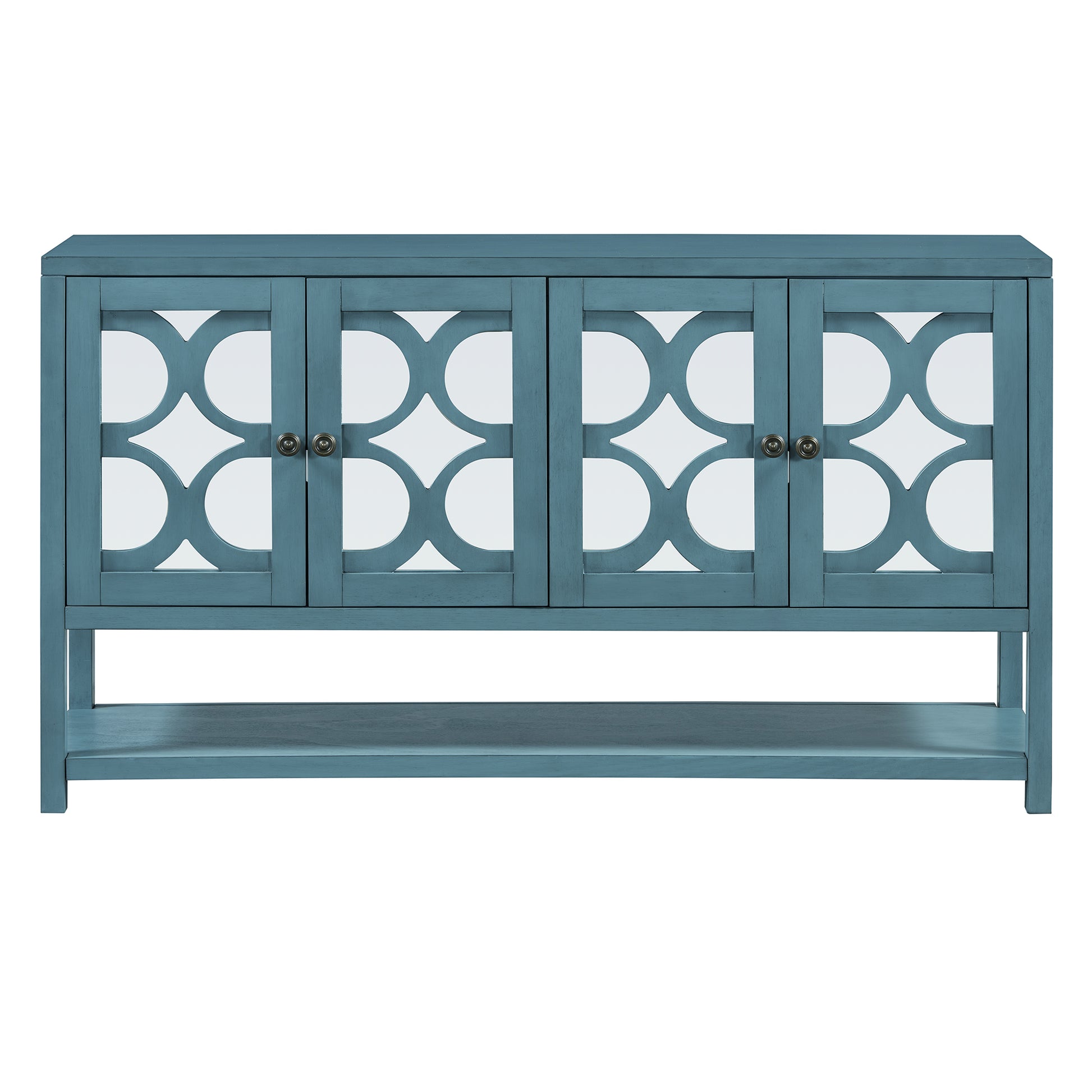 Elegant Retro Console Table Storage Cabinet Sideboard With Mirrored Doors, Spacious Shelves, And Durable Acacia Wood Legs Perfect For Living Room, Dining Room, Or Entryway Antique Navy Antique Navy Primary Living Space Solid Wood Mdf