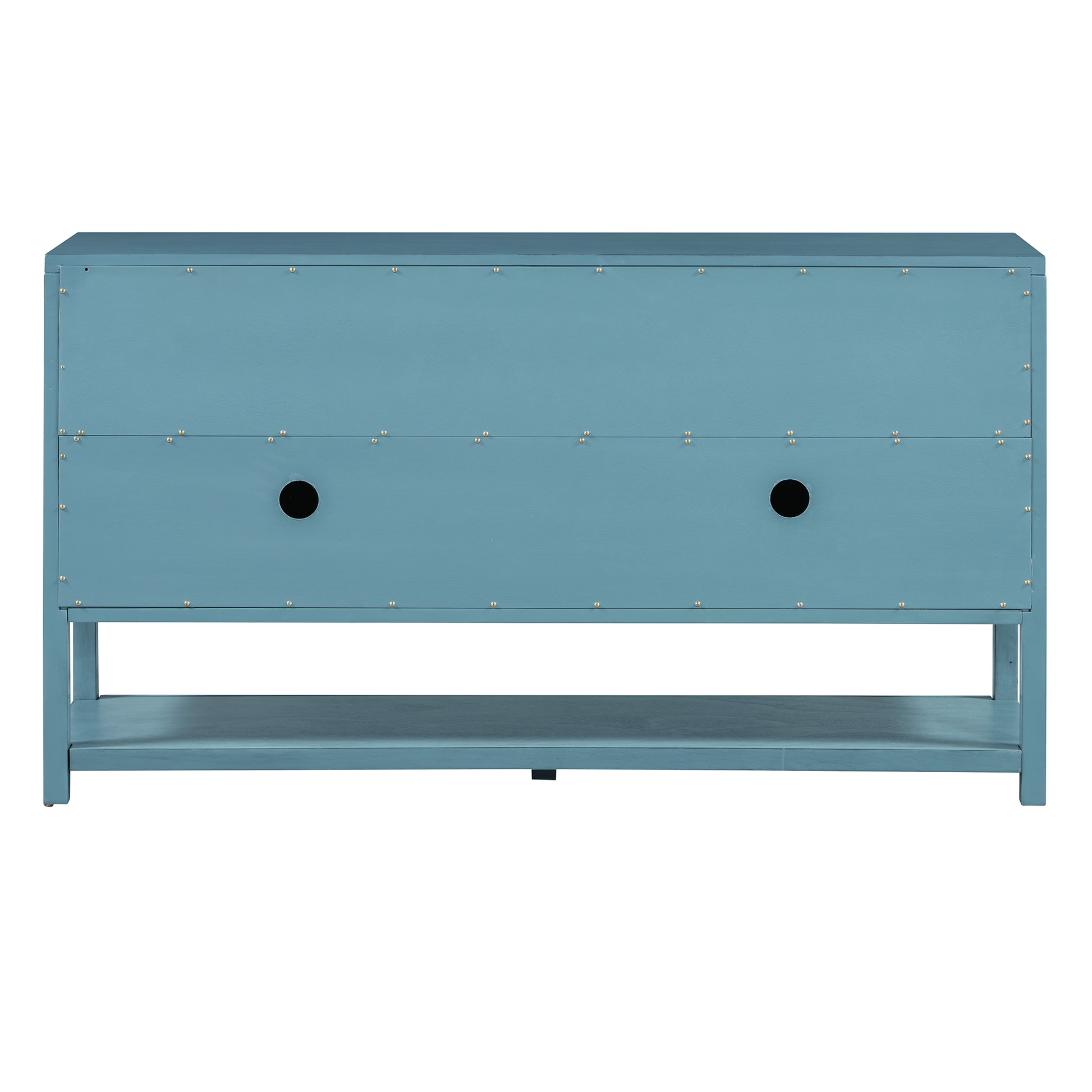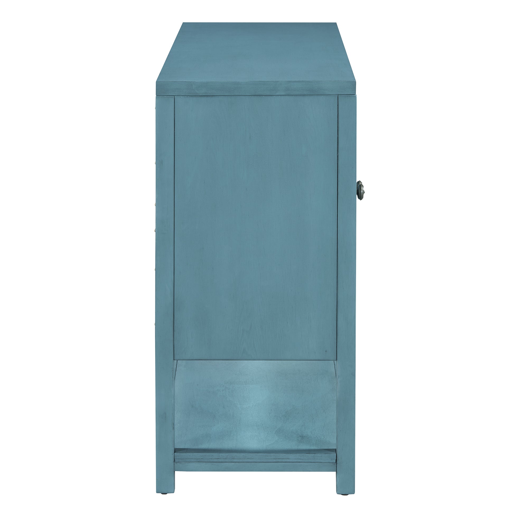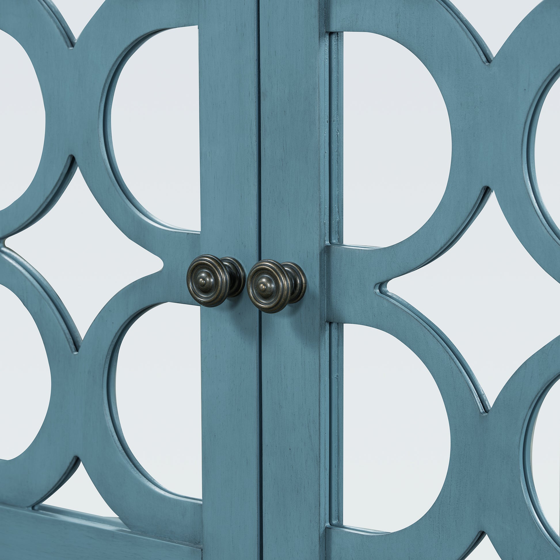 Elegant Retro Console Table Storage Cabinet Sideboard With Mirrored Doors, Spacious Shelves, And Durable Acacia Wood Legs Perfect For Living Room, Dining Room, Or Entryway Antique Navy Antique Navy Primary Living Space Solid Wood Mdf