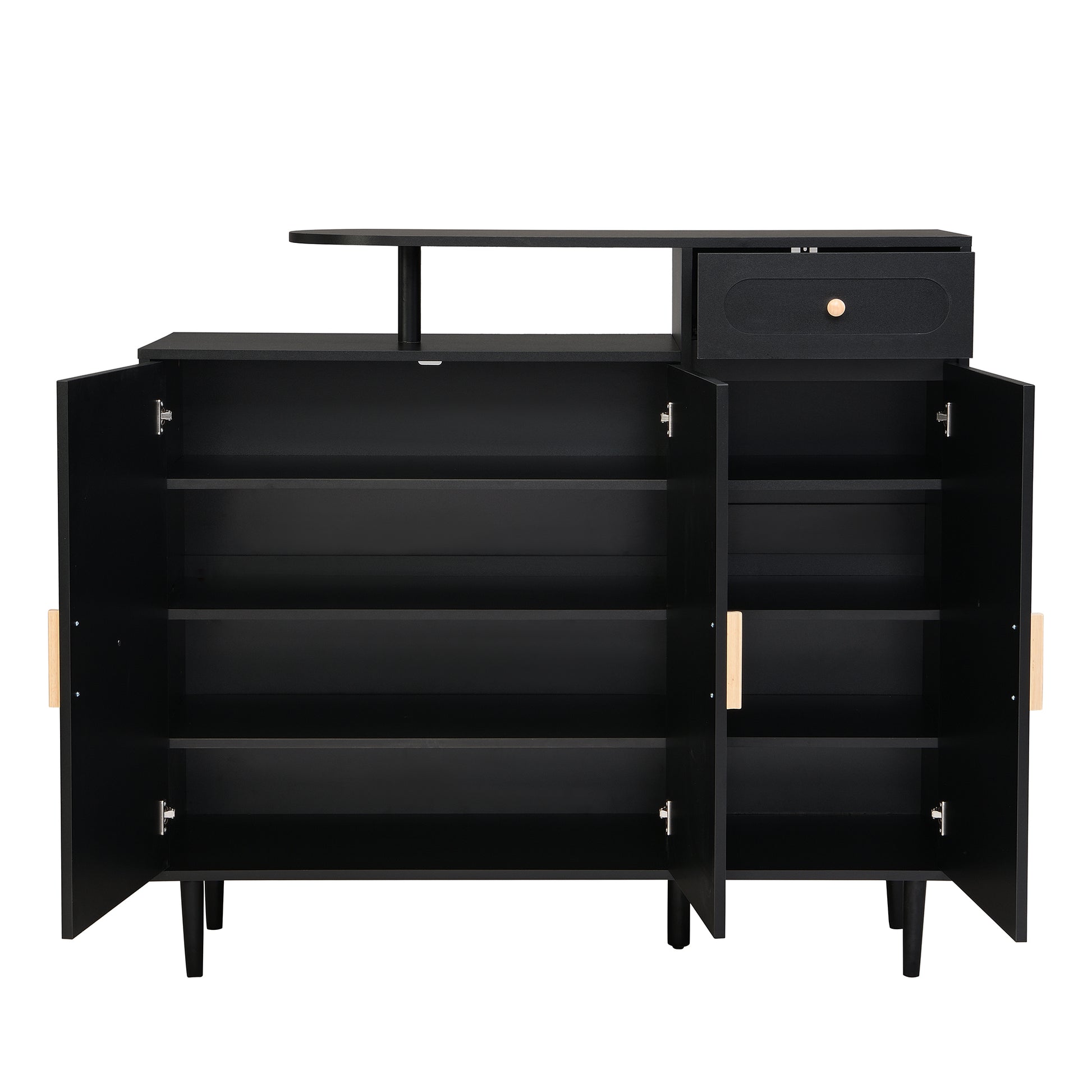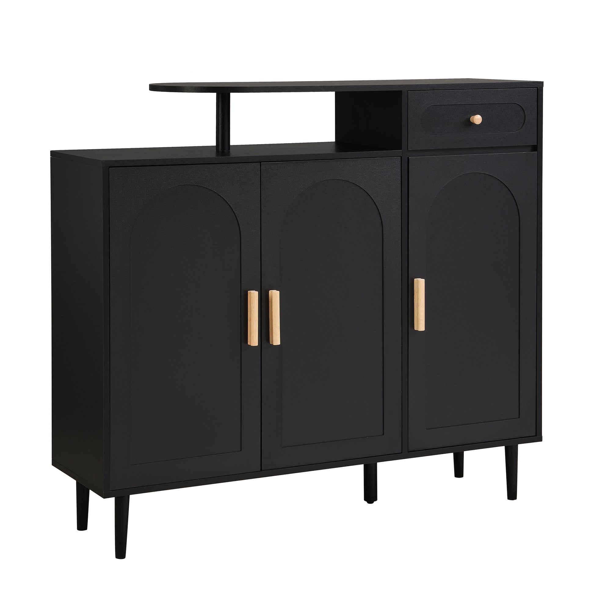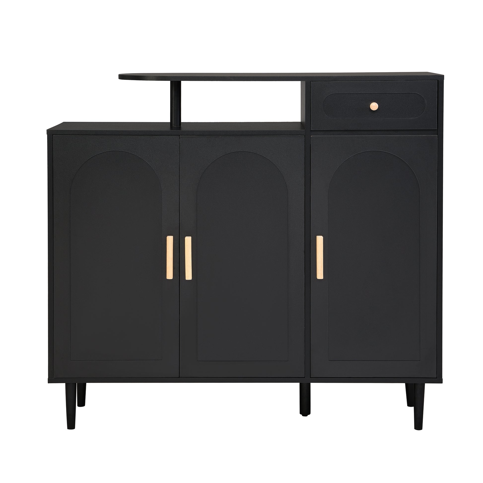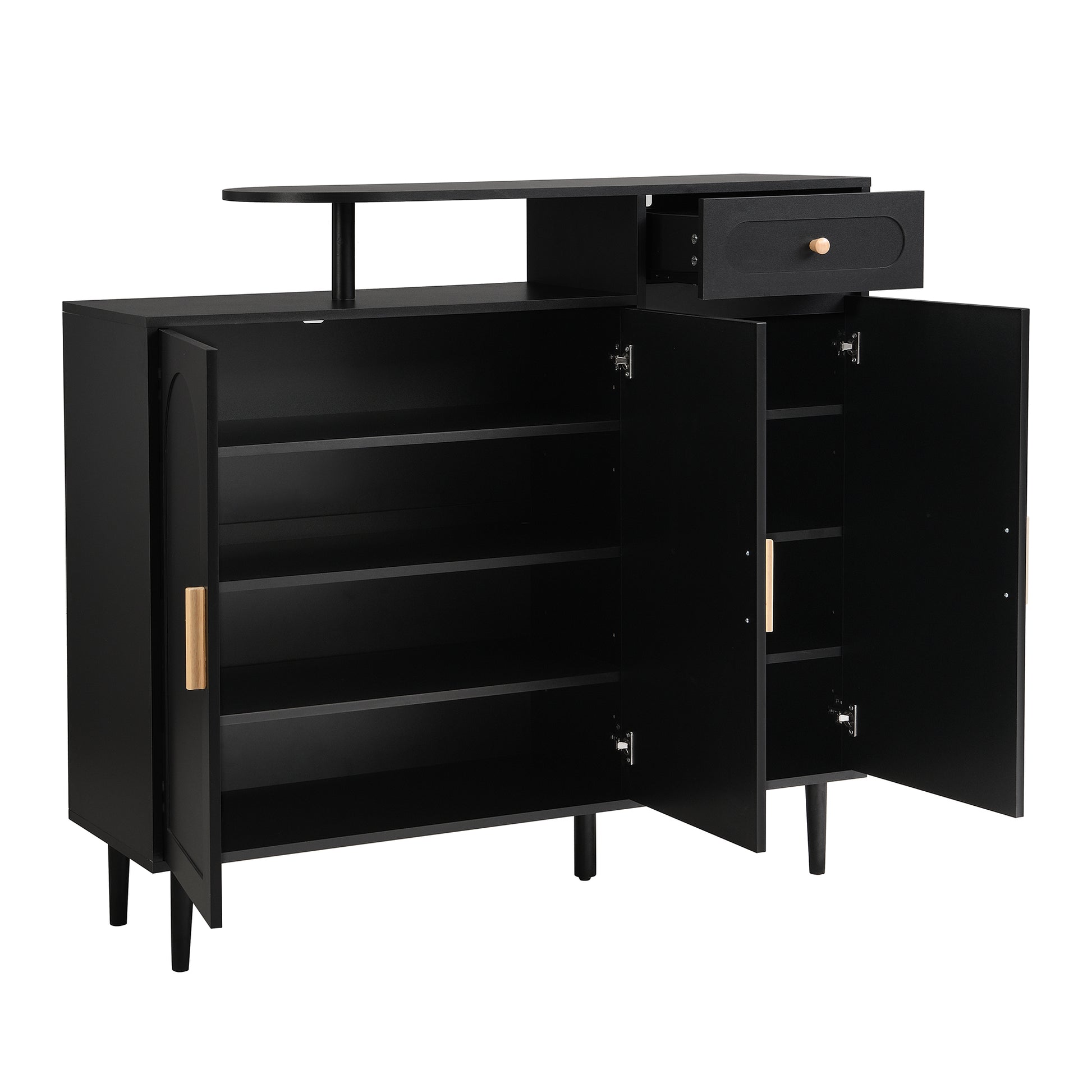 Elegant Shoe Cabinet With Arched Doors And Drawer, Cream Style Storage Sideboard With Adjustable Shelves And Solid Wood Legs For Entryway, Living Room, Black Freestanding 1 2 Drawers Black Primary Living Space Adjustable Shelves Particle Board Mdf